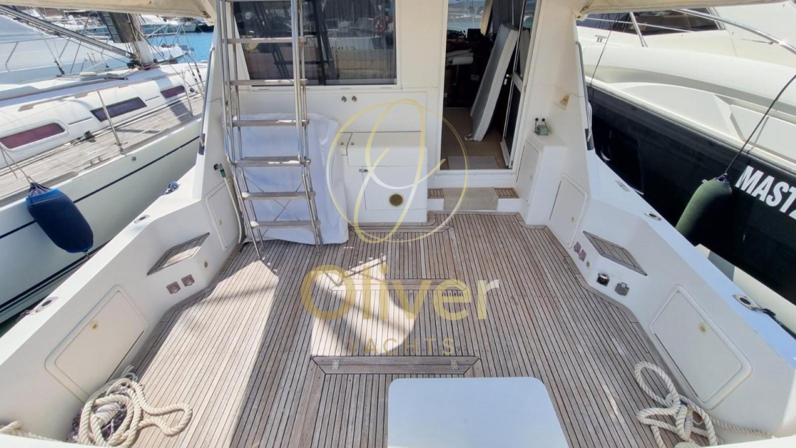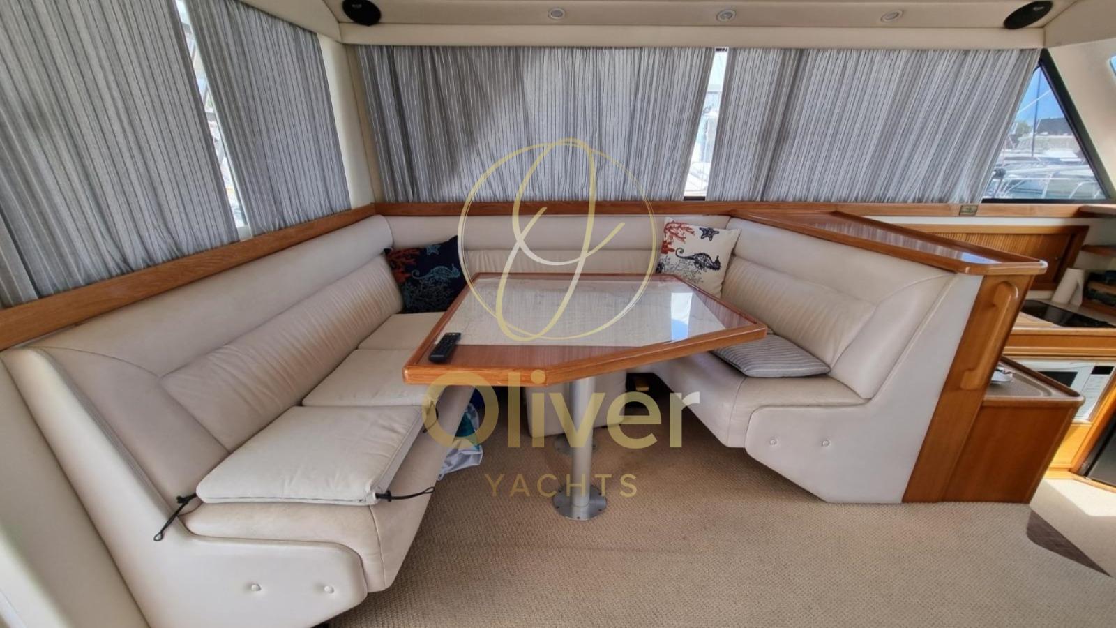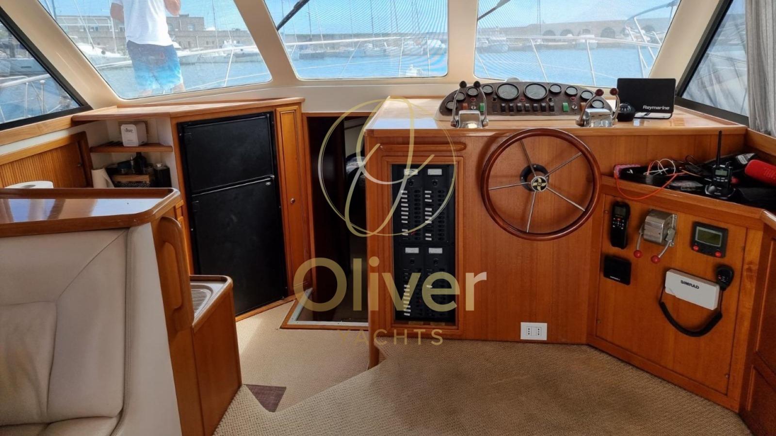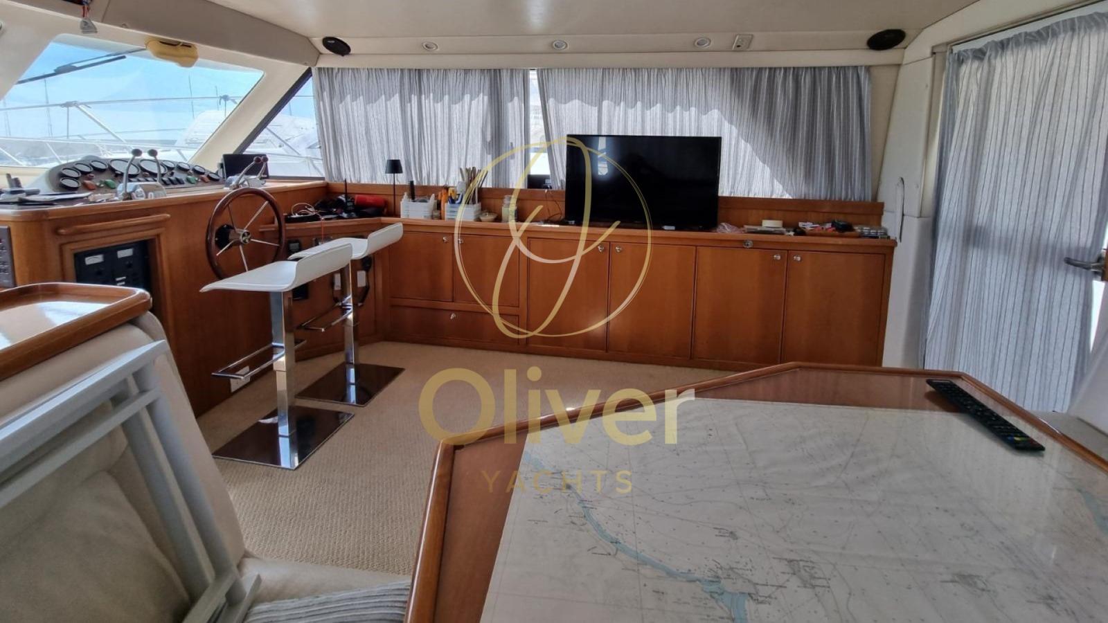 All' interno si trova la zona cucina (galley), completamente attrezzata: piano cottura, forno, lavello in acciaio, frigo e numerosi vani contenitori. In questa versione è presente anche una plancia di comando interna, perfetta per la navigazione con clima sfavorevole.