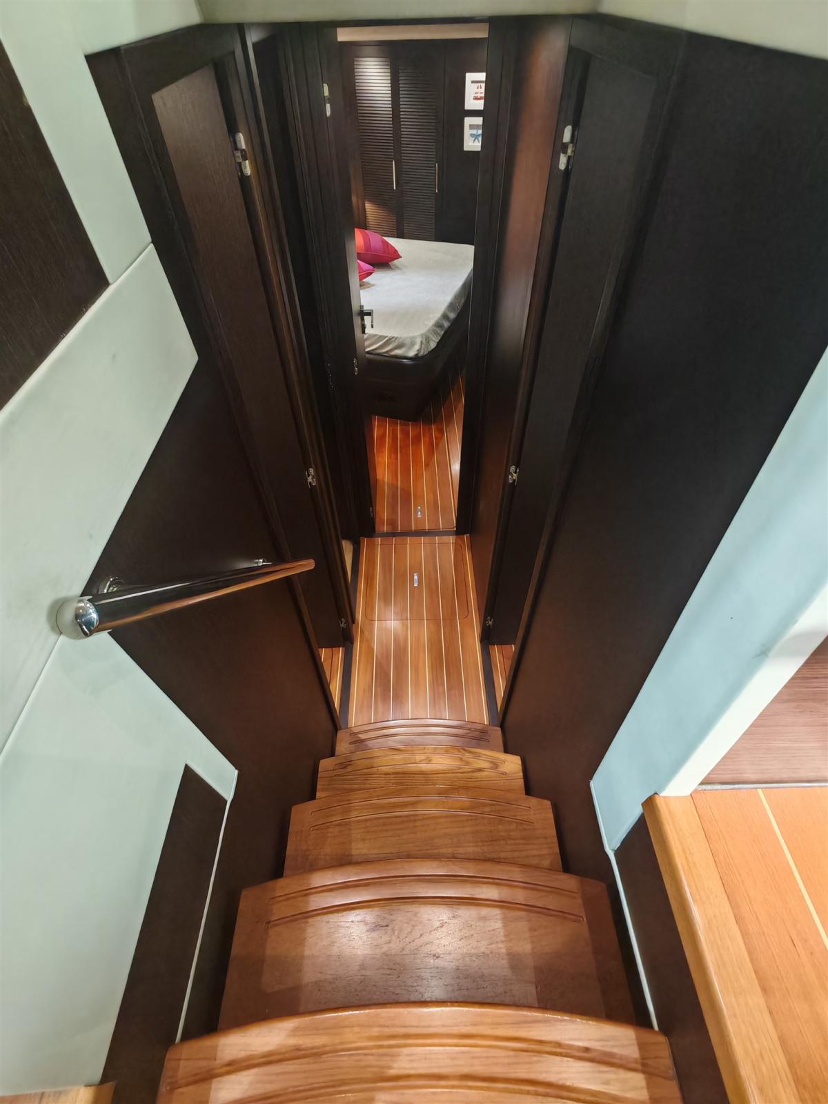 Allarme motore, Allarme sentina, Autoclave, 4 Batterie (agosto 2023), Camminamenti laterali in teak, Doccia esterna, Doppia timoneria, Faro orientabile, Flap idraulici, Impianto antincendio, Indicatori Flaps, Luci di cortesia, Passerella, Piattaforma (in teak abbatibile), Porta ingresso (con apertura totale), Porta laterale, Pozzetto Teak, Presa 220V banchina, Raddrizzatore, Salpa Ancore Elettrico, Scaletta da bagno, Tavolo pozzetto, Tromba, T-Top (in vtr sul fly), 2 Winch Elettrico.