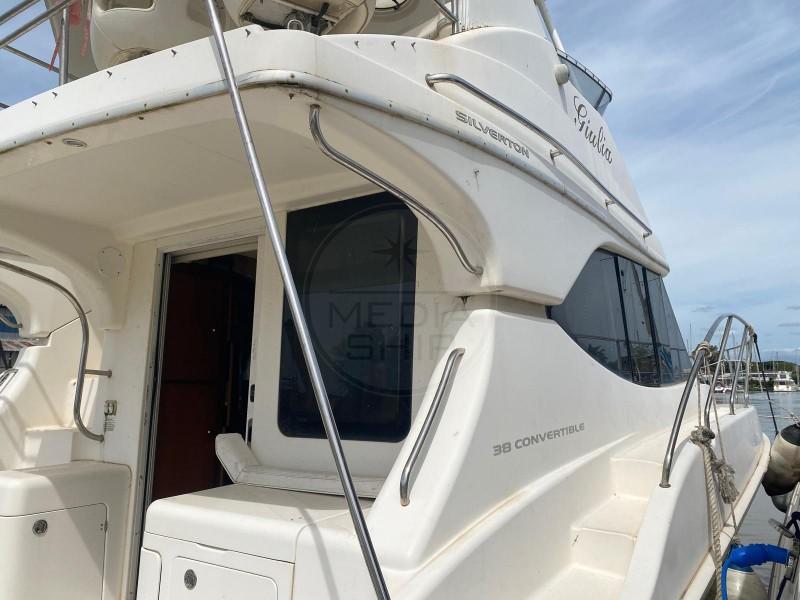 SILVERTON 38, 2005, SCAFO BIANCO, 2 x 370 HP YANMAR, 500 ORE DI MOTO, DIESEL, ELICA DI PRUA, 2 CABINA/E, 1 BAGNO/I, ICE MAKER, GENERATORE, ARIA CONDIZIONATA, PASSERELLA IDRAULICA, +39 06 65 22 258/9, www.mediaship.it - CODICE ANNUNCIO W185423/M - Entra in MediaShip.it e consulta le Schede descrittive, con oltre 6.000 tra Immagini e Video, potrai prenotare la tua Video Visita a bordo, acquistare e vendere il tuo Posto Barca e riservare le migliori imbarcazioni e Location per le tue vacanze in barca.