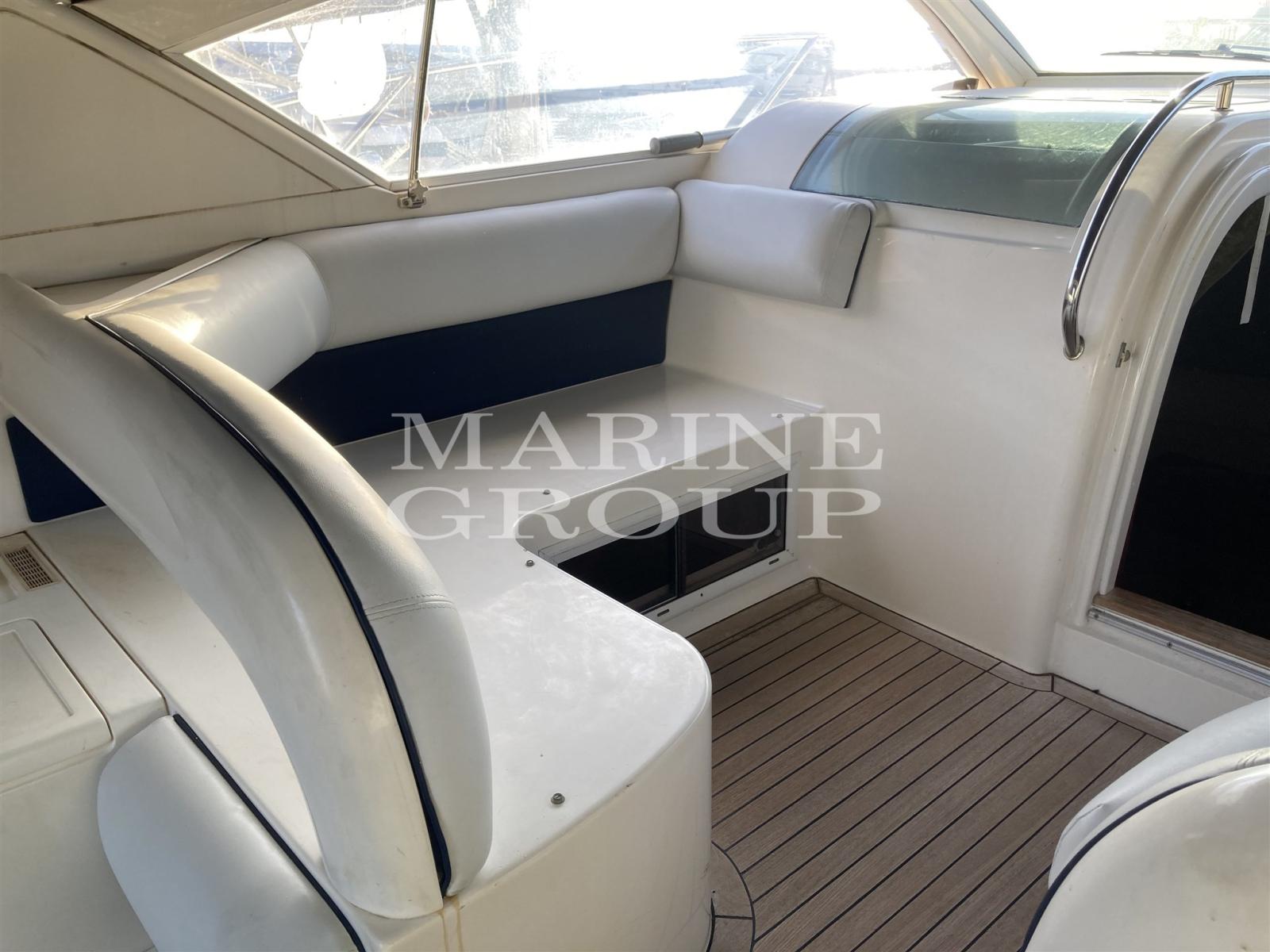 Arredi in essenza in ciliegio lucida in eccellenti condizioni. Cucina attrezzata, divano semicircolare con tavolino abbattibile; Cabina a prua con letto matrimoniale e bagno completo con box doccia separato; cabina a centro barca a tutto baglio con letti singoli in piano trasfrormabile in matrimoniale.