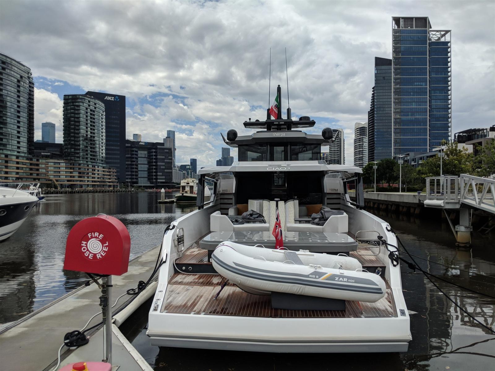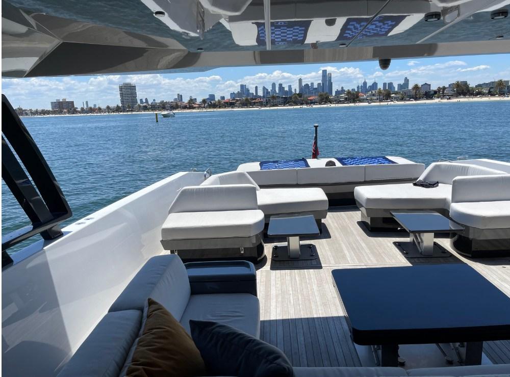 Seakeeper Gyro Stabiliser, Electric opening tender garage hatch, Teak deck in upper saloon & wheelhouse, electric windows in wheelhouse, solid lockable door to wheelhouse