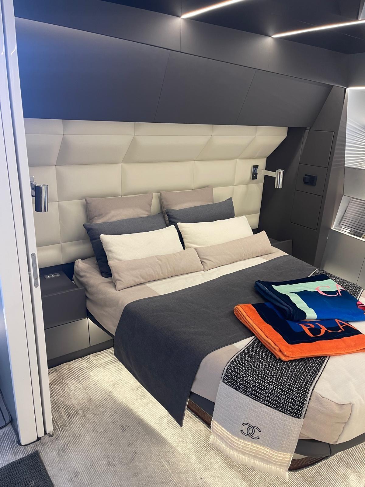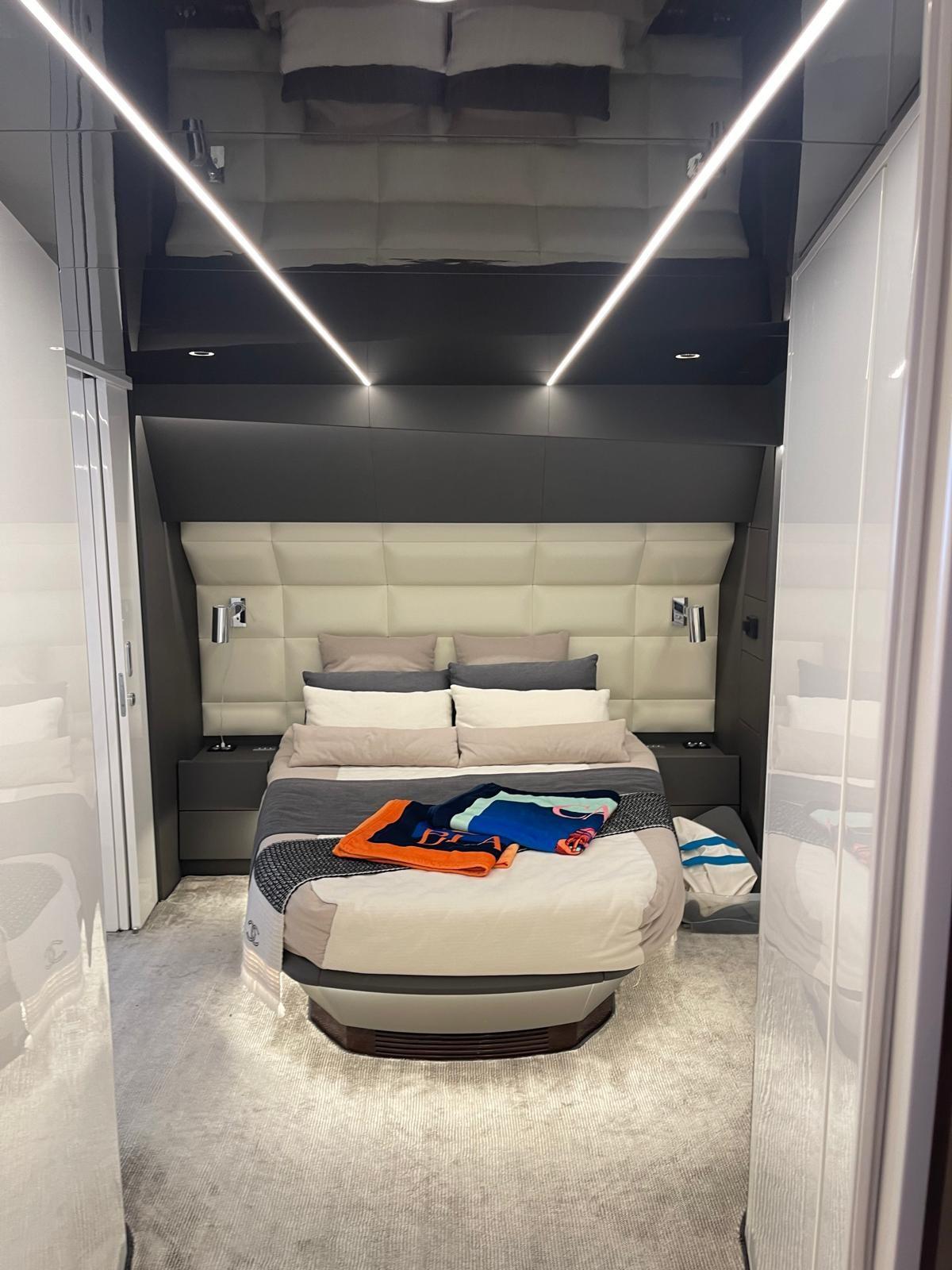 Allarme fumo/gas, 2 Allarme motore, Allarme sentina, Alternatore, Apertura Vano Motore Elettrica, Auto Dynamic Trim Interceptor, Autoclave, Camminamenti laterali in teak, Doccia esterna, Fari fissi a poppa, Flap elettrici, Garage per tender, Gruette per tender, Hard top, Impianto antincendio, Lavaggio catena, Lavandino nel Pozzetto, Luci di cortesia, Luci subacquee, Pannelli Solari, Passerella, Piattaforma, 5 Pompa di sentina automatica, Ponte in teak, Porta ingresso, Pozzetto Teak, Presa 220V banchina, Presa acqua banchina, Raddrizzatore, Salpa Ancore Elettrico, Scaletta da bagno, Sistema Depurazione acque nere, Stabilizzatori, Tavolo pozzetto, Tender, Tromba, Winch tonneggio di prua.