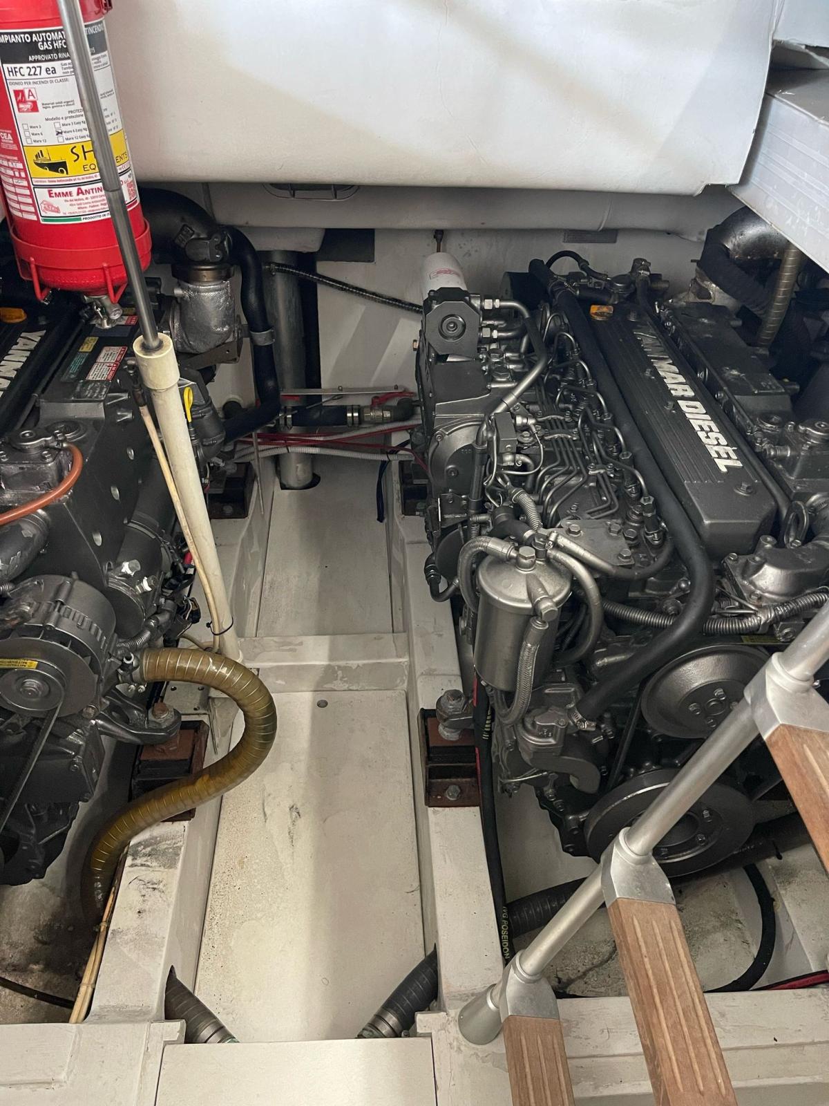 Allarme fumo/gas, Allarme motore, Allarme sentina, Apertura Vano Motore Elettrica, 5 Batterie, Doccia esterna, Flap idraulici, Passerella, Presa 220V banchina, Rollbar, Salpa Ancore Elettrico, Tavolo pozzetto.