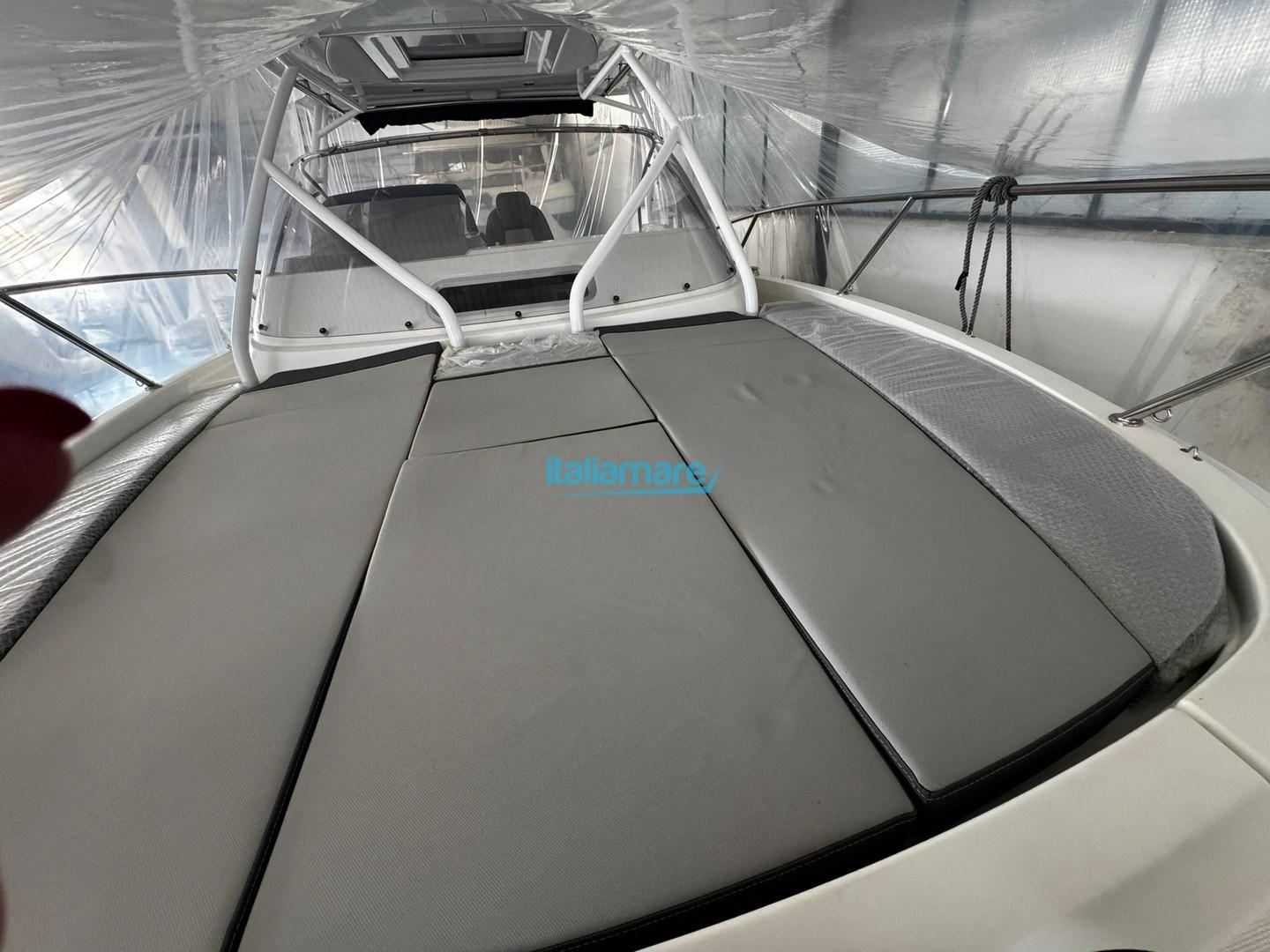 Gli interni ospitano una cabina con cuccetta doppia, angolo cottura e bagno con box doccia separato, dietro la scaletta è presente una seconda cuccetta per altri due posti letto, portando la capacità notturna a 4 persone.