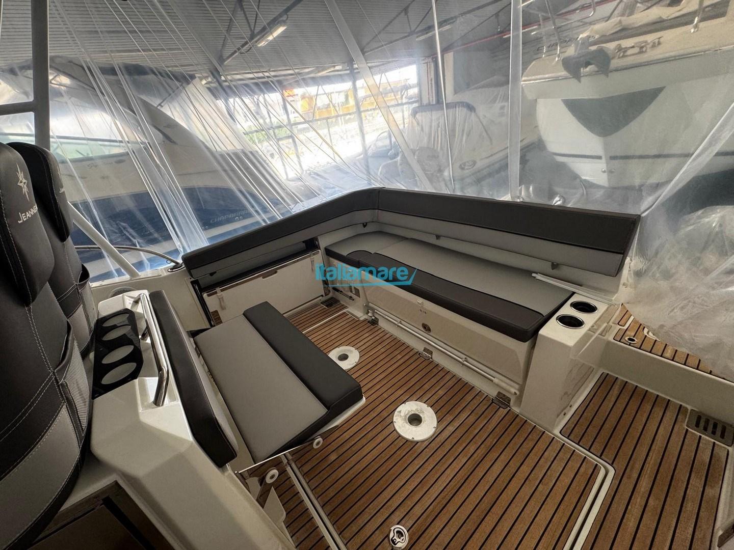 Il pozzetto dispone di un divano a L trasformabile in prendisole e sedili bolster rivolti verso la plancia, per una navigazione rilassante ma dinamica.