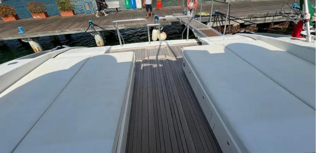 Allarme motore, Allarme sentina, Autoclave, Camminamenti laterali in teak (nuovo 2021), Doccia esterna, Faro orientabile, Flap idraulici, Impianto antincendio, Lavaggio catena, Lavandino nel Pozzetto, Passerella (idraulica), Piattaforma (in teak), Pompa di sentina manuale, Pozzetto Teak, Raddrizzatore, Rollbar, Salpa Ancore Elettrico, Scaletta da bagno, 2 Tavolo pozzetto, Tender, Tromba, Winch tonneggio di prua.
