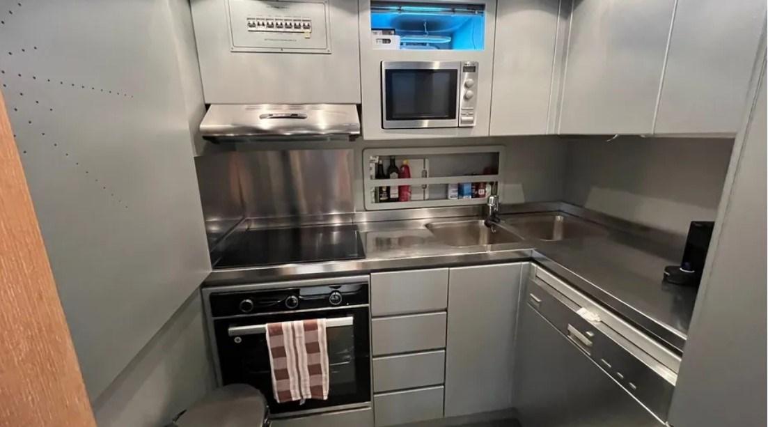 Boiler (elettrico), Cassaforte, Dissalatore, Pavimento interno in legno, Prese interne 12v, Prese interne 220v, 4 WC marino elettrico.