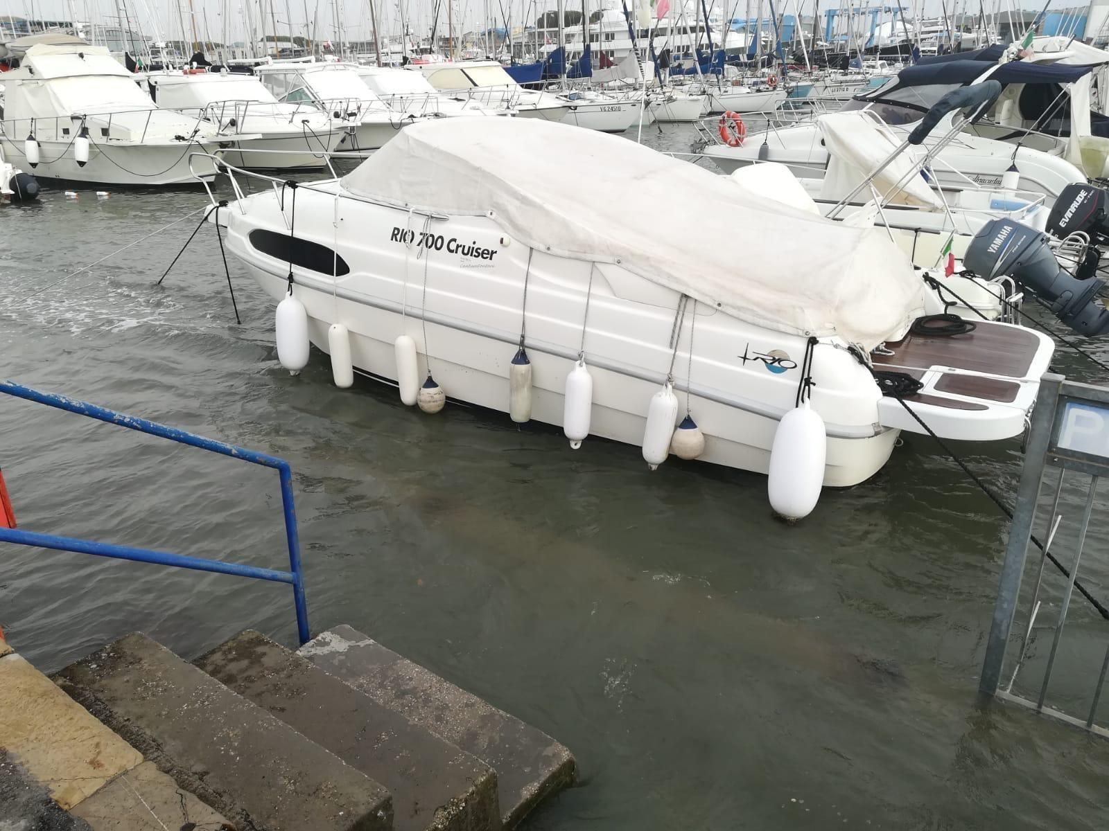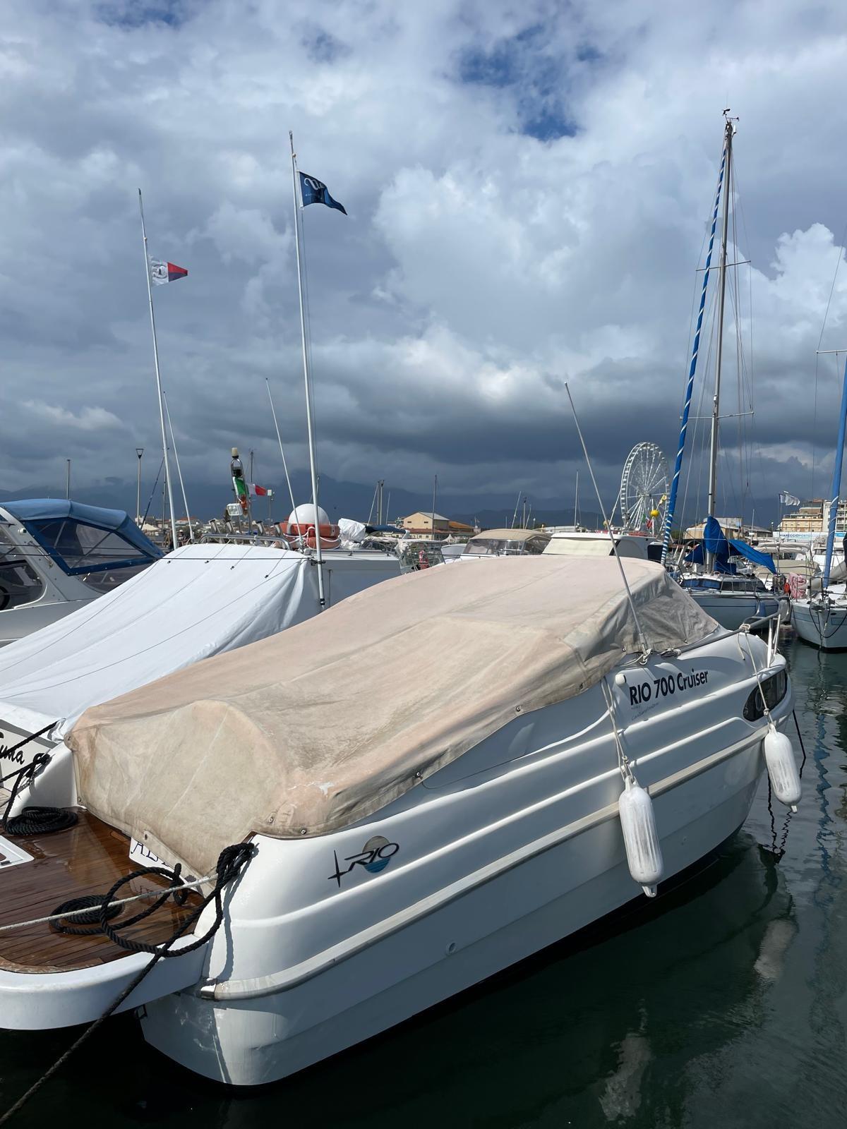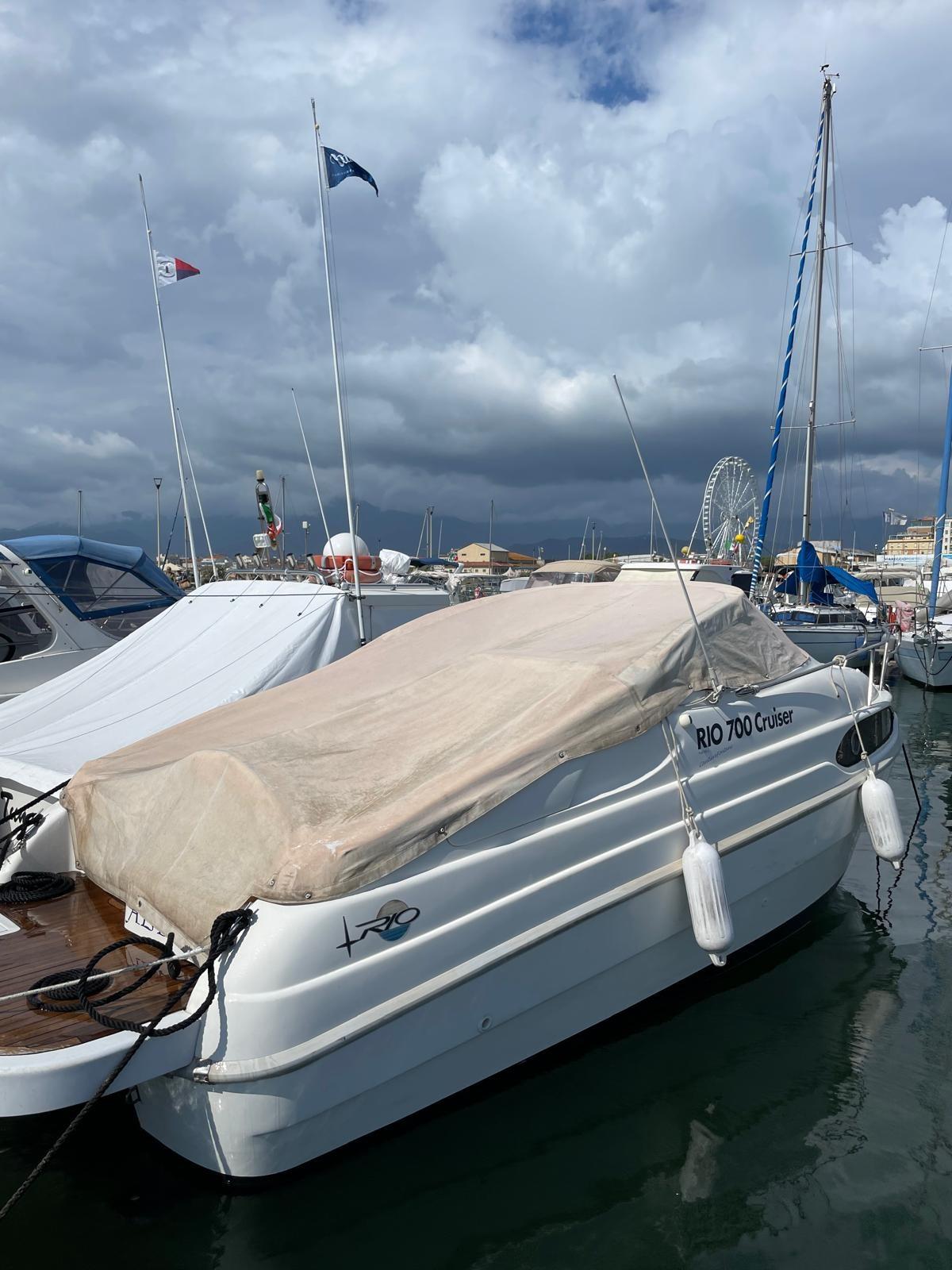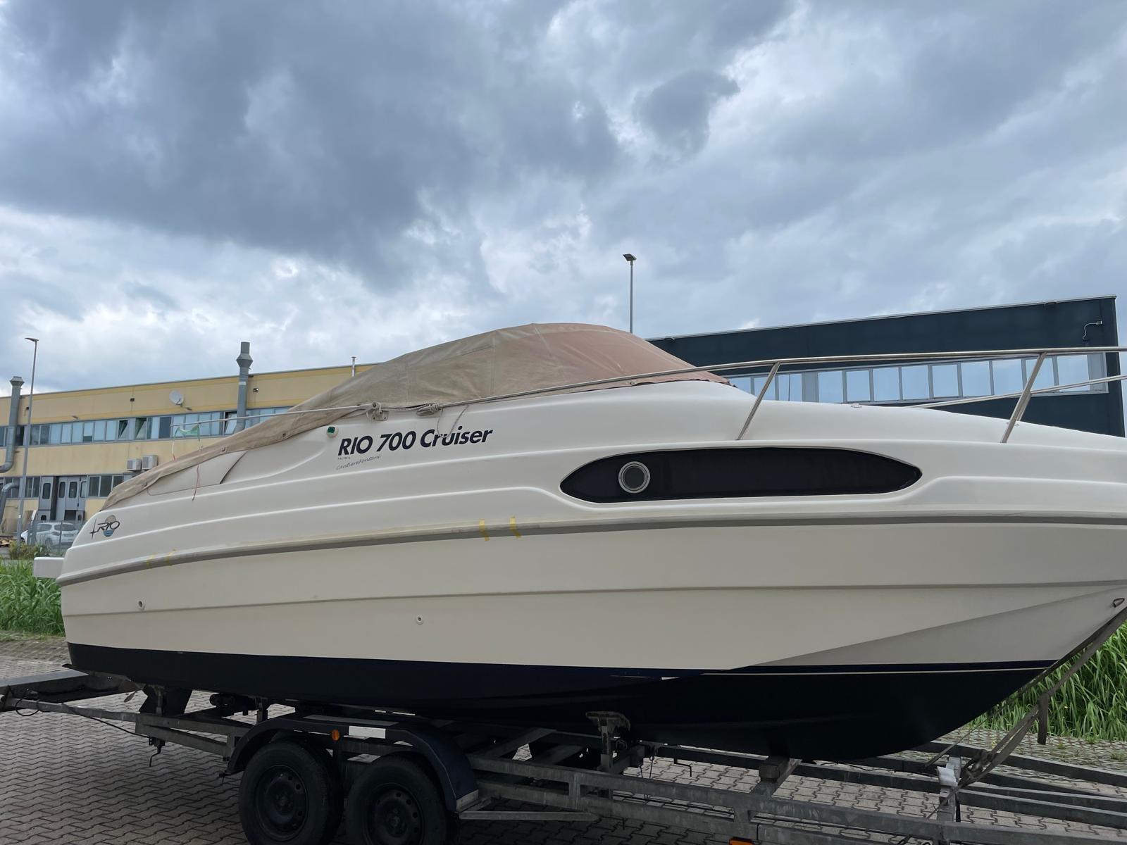 RIO 700 CRUISER DEL 2002 CON MERCRUISER 5.0 MPI BRAVO III CON 446 ORE. DINETTE TRASFORMABILE , BAGNO SEPARATO . LETTO DI POPPA, CUCINA ATTREZZATA ,