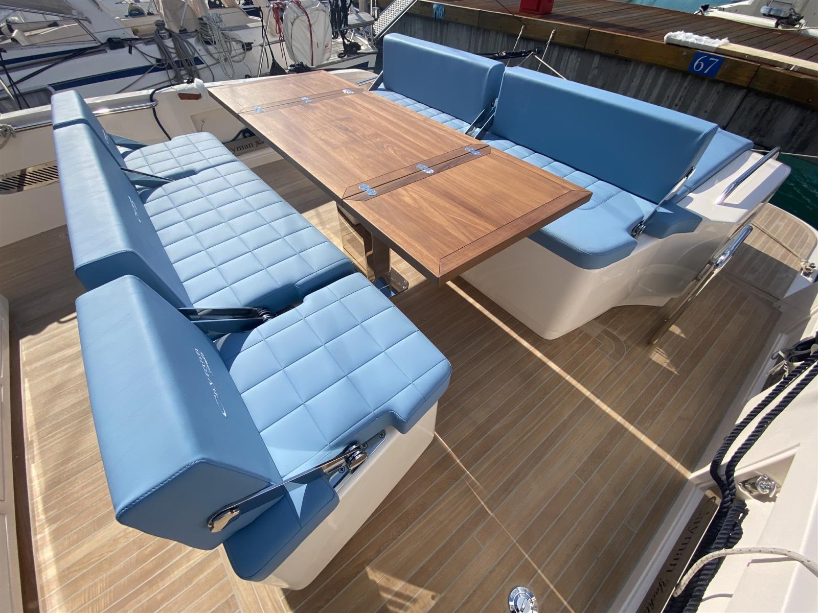 Prendisole di poppa trasformabile con tavolo elettrico e cuscino di ampliamento divano in materasso