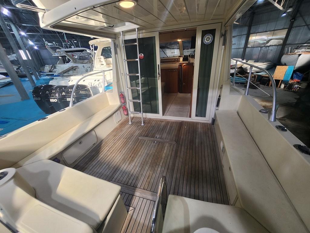 Allarme motore, Autoclave, Batterie (2023), Doccia esterna, Faro orientabile (elettrico), Gruette per tender, Impianto antincendio, Luci di cortesia, Passerella (idraulica), Piattaforma, Porta ingresso, Pozzetto Teak, Presa acqua banchina, Raddrizzatore (2023), Rollbar, Scaletta da bagno.