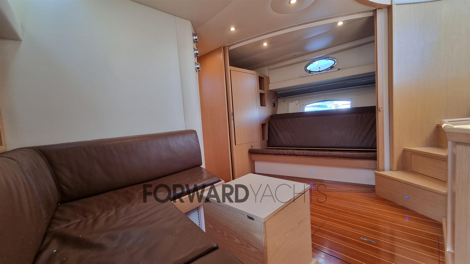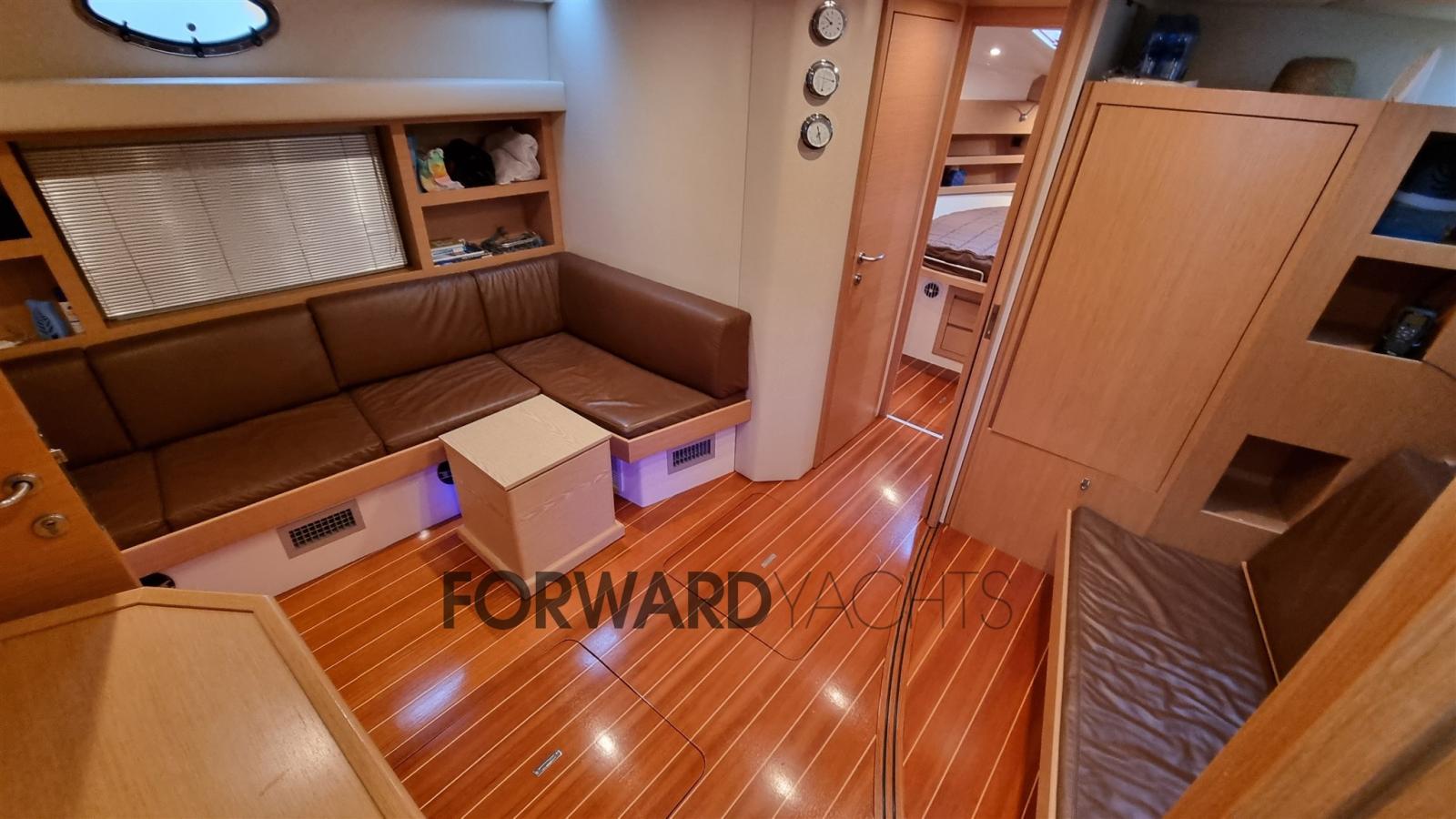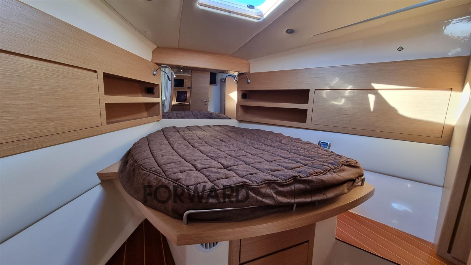 Layout 2 cabine (con dinette trasformabile) motorizzata Volvo Penta, trasmissione IPS, ben accessoriata : elica di prua, aria condizionata anche in pozzetto, generatore, garage tender, passerella idraulica.