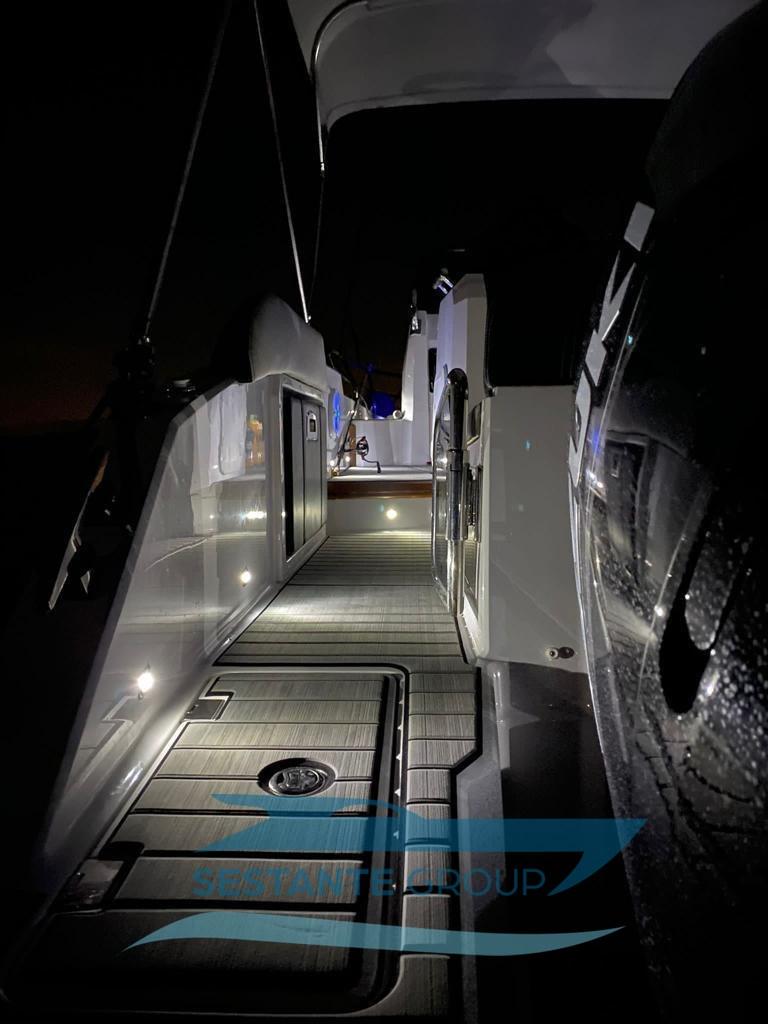 Allarme motore, Autoclave, 3 Batterie (100 Ah), Colorazione speciale, Doccia esterna, Lavandino nel Pozzetto, Luci di cortesia, Luci subacquee, Pompa di sentina automatica, Ponte in teak (Seadek), Porta ingresso, Pozzetto Teak (Seadek), Presa 220V banchina, Salpa Ancore Elettrico, Scaletta da bagno, Tavolo pozzetto, Tavolo Salone Abbattibile, Tromba.