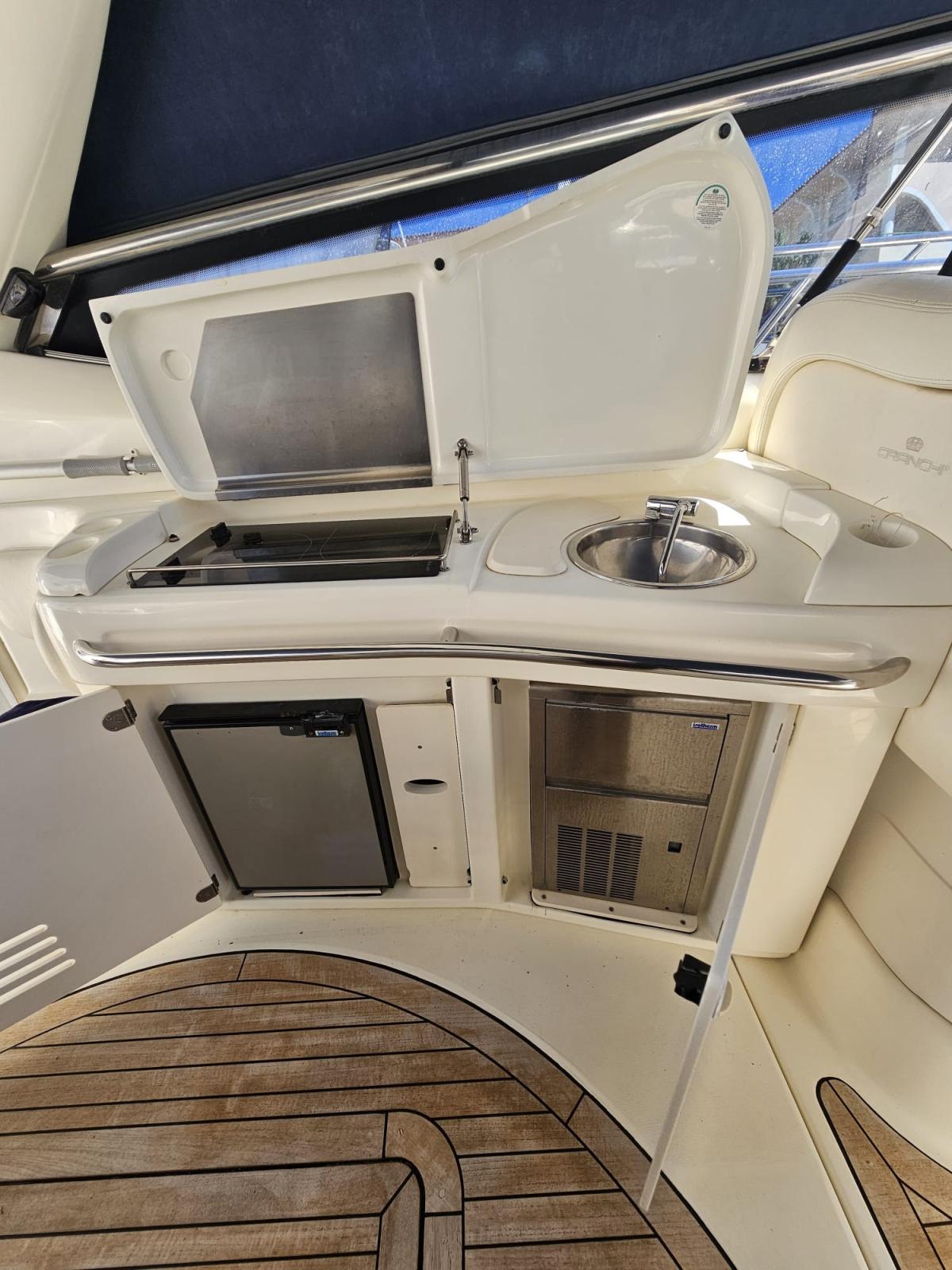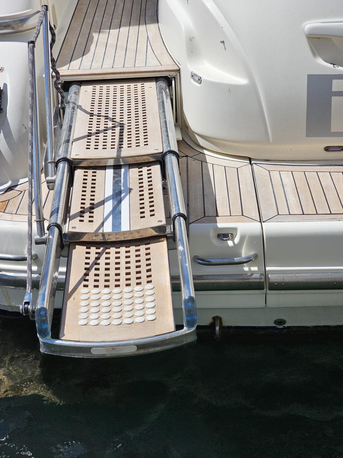 Allarme motore, Allarme sentina, Autoclave, 8 Batterie, Doccia esterna, Passerella, Piattaforma, Pozzetto Teak, Presa 220V banchina, Presa acqua banchina, Rollbar, Salpa Ancore Elettrico, Scaletta da bagno.
