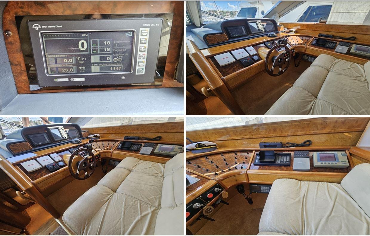 Allarme motore, 8 Batterie, Doccia esterna, Doppia timoneria, Gruette per tender su fly, Passerella, Pozzetto Teak, Presa 220V banchina, Presa acqua banchina, Salpa Ancore Elettrico, Scaletta da bagno, Tavolo pozzetto, Winch tonneggio di poppa.