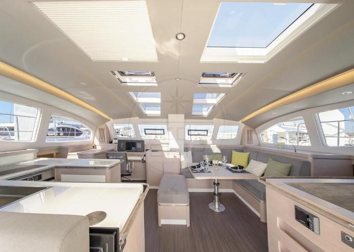 Lo SLYDER 49, in versione Armatoriale con interni in rovere sbiancato, è ottimamente equipaggiato, con: derive mobili, timonerie in carbonio, generatore, dissalatore 150 lt/h, pannelli solari 2,7 kW, climatizzatore, bagni elettrici e box doccia, GPS interno/esterno, autopilota, spiaggetta di poppa, copertura totale pozzetto e hard-top, tavolo in pozzetto abbattibile, serbatoio acqua maggiorato (720 lt totali), lavasciuga, forno, microonde, piano cottura a induzione, lavastoviglie, freezer, TV in salone, antenna Internet + booster 4G, impianto HiFi con altoparlanti esterni. Nel 2019 le nuove vele in carbonio (randa, fiocco, trinchetta e code 0), solo 450 ore di moto, ottime condizioni e residuo leasing - Entra in MediaShip.it e consulta le Schede descrittive, con oltre 6.000 tra Immagini e Video, potrai prenotare la tua Video Visita a bordo, acquistare e vendere il tuo Posto Barca e riservare le migliori imbarcazioni e Location per le tue vacanze in barca.