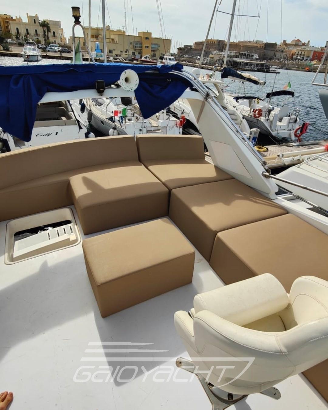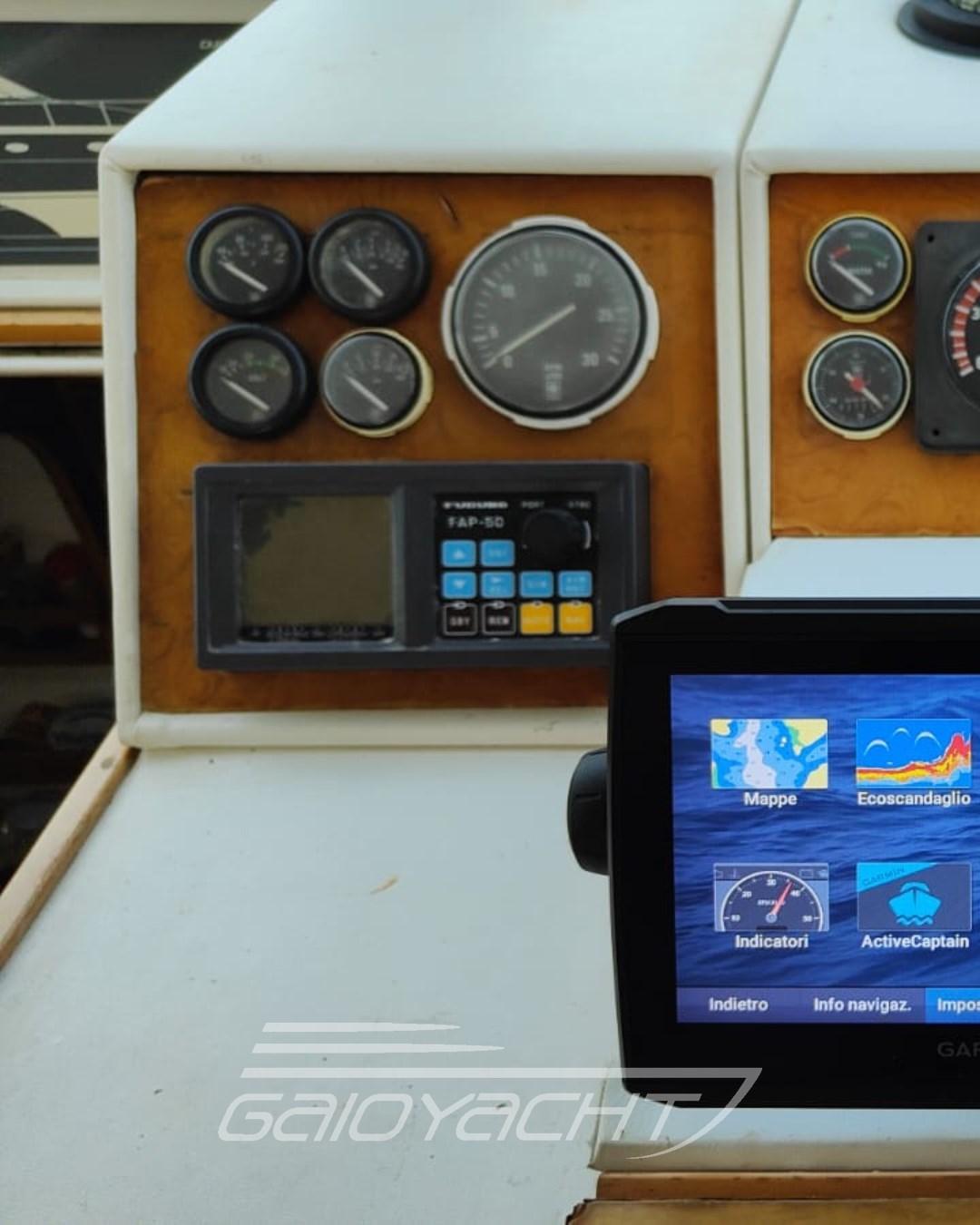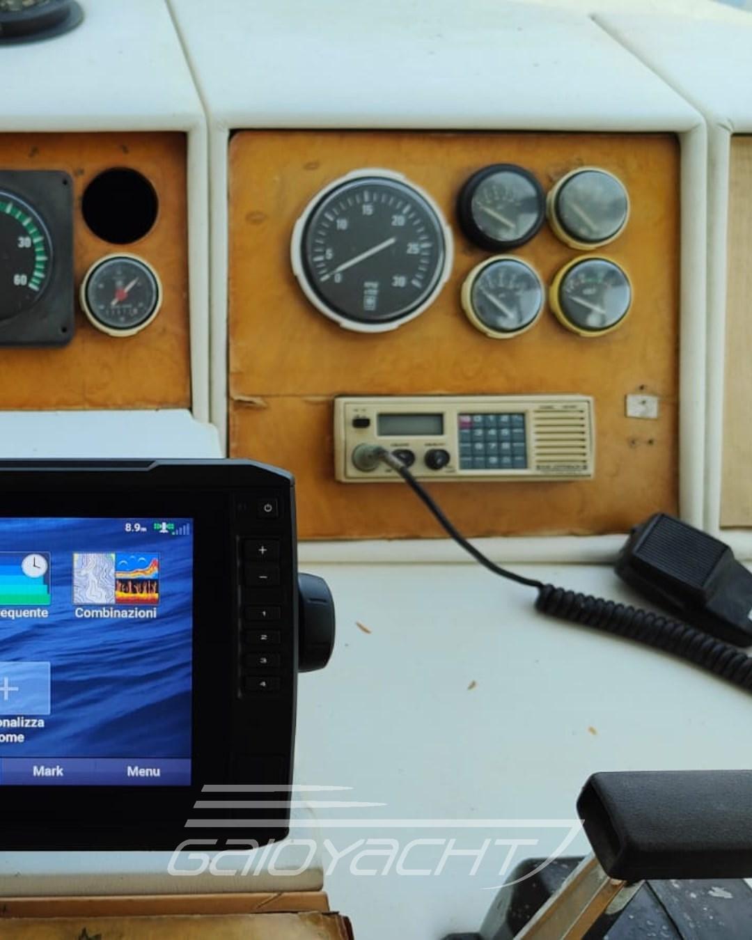 Allarme motore, Allarme sentina, Autoclave, 4 Batterie (2 Motori + 2 Servizi AGM), Camminamenti laterali in teak (S teack), Doccia esterna, Doppia timoneria, Flap idraulici, Impianto antincendio, Lavaggio catena, Passerella (Besenzoni), Pompa di sentina automatica, Porta ingresso, Pozzetto Teak, Presa 220V banchina, Presa acqua banchina, Raddrizzatore, Salpa Ancore Elettrico, Scaletta da bagno, Selle per Tender, Tavolo pozzetto (Amovibile), Tromba.