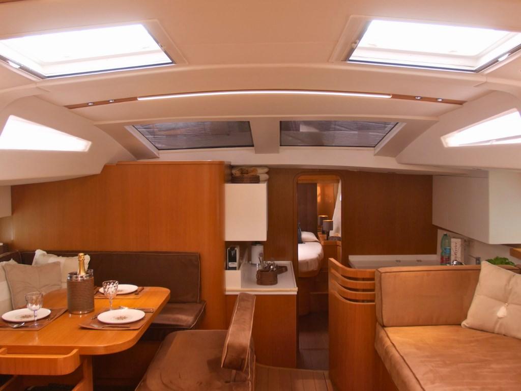 – Interni firmati Marco Casali: dinette open‐space, tappezzerie Alcantara, illuminazione LED e sei nuovi oblò di murata per una luminosità superiore.