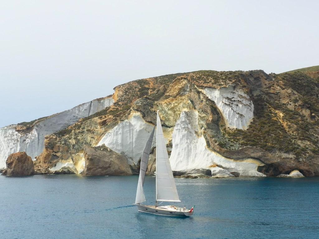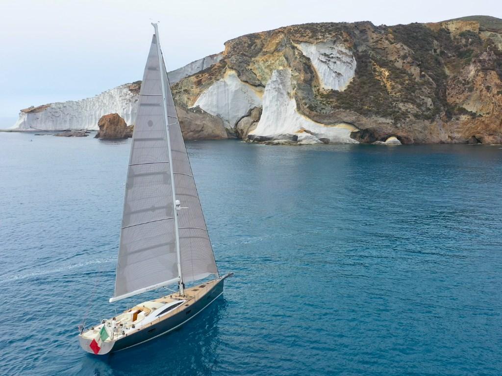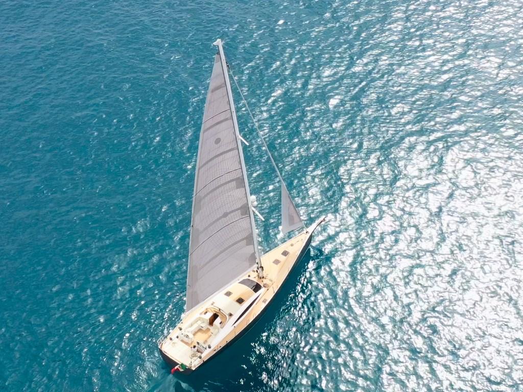 – Albero e delfiniera in carbonio con furling‐boom, sartiame completamente sostituito e quattro winch elettrici per manovre rapide anche a equipaggio ridotto.
