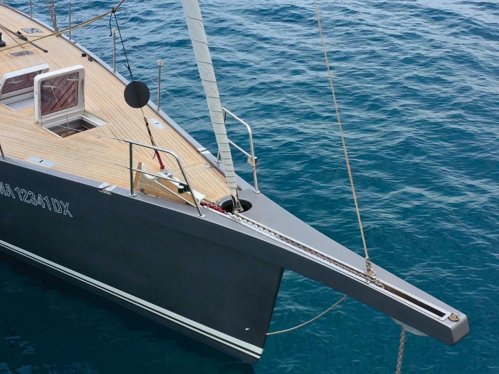 – Scafo in epossidica con rinforzi in carbonio, nuovo ponte e coperta in teak massello (2019), verniciatura grigio metallizzato e delfiniera in carbonio con ancora Ultra inox integrata.
