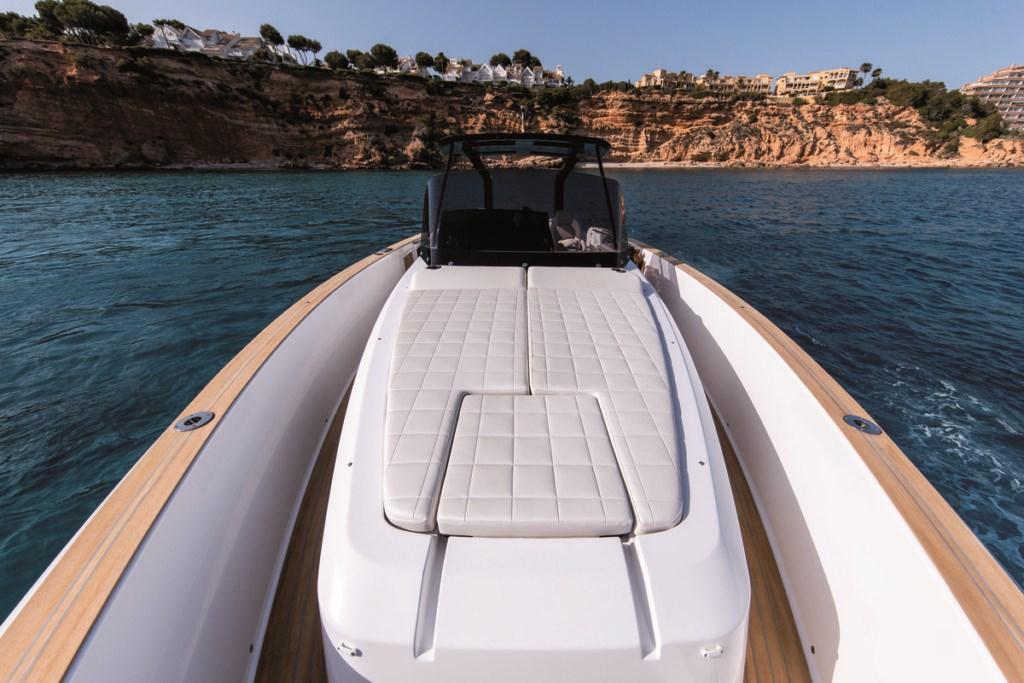 L’ambiente open space è caratterizzato da ampi volumi, altezze generose, abbondante luminosità e ottima ventilazione, con una distribuzione degli spazi eccezionale per un’imbarcazione di 38 piedi.