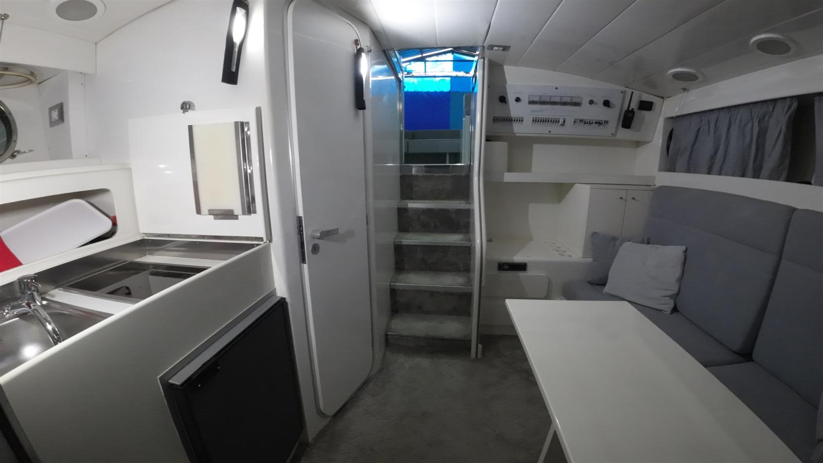 2 inverter, a/c in cabina, due fuochi induzione, caricabatterie quick, salpaancora, catena e ancora maggiorate, hifi nuovo, autopilota, allarmi motori e telecamere sala macchine, passerella revisionata con centralina cavi e telecomandi nuovi, generatore, 4 batterie servizi 2024, moquette interna pregiata grigia, dinette trasformabile in matrimoniale.