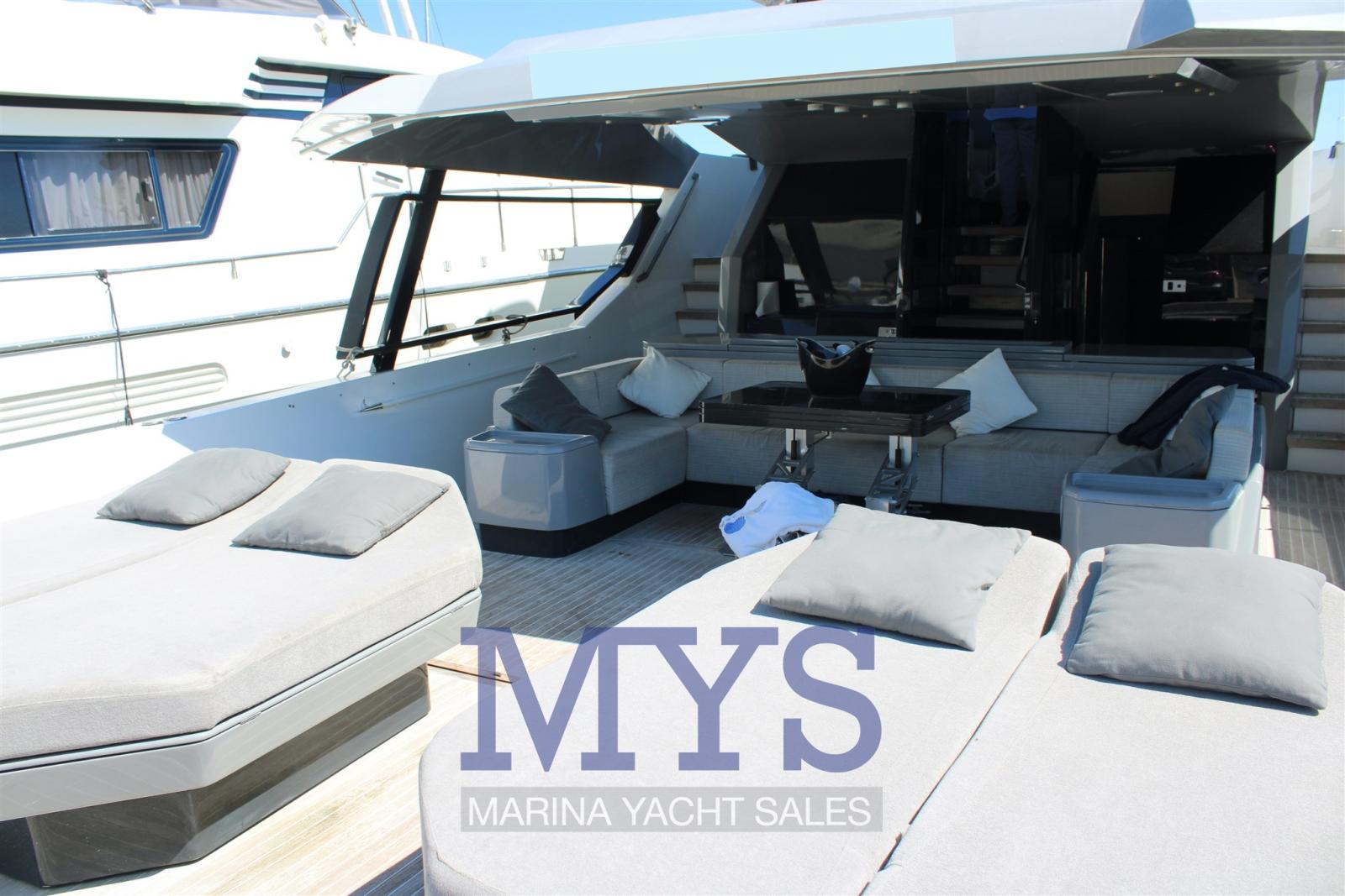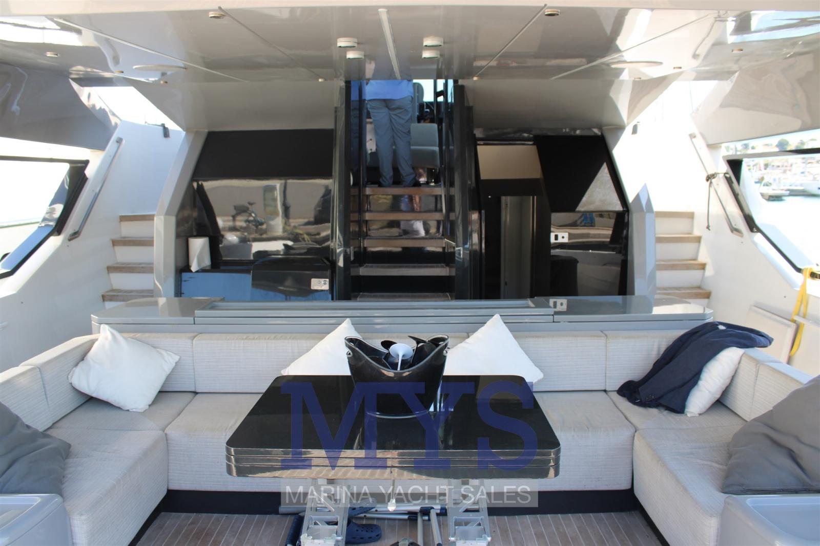Allarme motore, Alternatore, Apertura Vano Motore Elettrica, Autoclave, Auto-Trim, Camminamenti laterali in teak, Colorazione speciale, Doccia esterna, Faro orientabile, Garage per tender, Gruette per tender, Impianto antincendio, Indicatori Flaps, Lavandino nel Pozzetto, Luci di cortesia, Luci subacquee, Pannelli Solari, Passerella, Piattaforma, Pompa di sentina automatica, Ponte in teak, Pozzetto Teak, Presa 220V banchina, Presa acqua banchina, Salpa Ancore Elettrico, Scaletta da bagno, Stabilizzatori, Tavolo pozzetto, Tromba, T-Top, Winch tonneggio di poppa.
