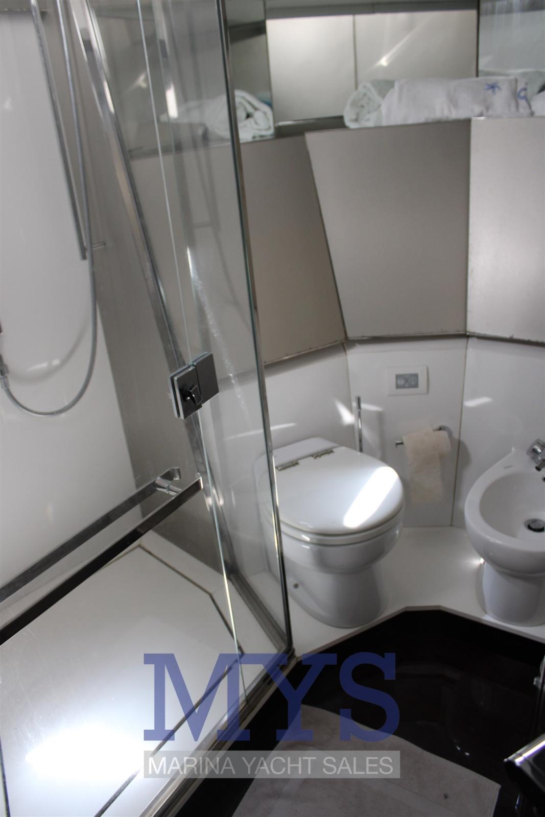 1 Cabina matrimoniale armatoriale di prua con bagno pertinente dotato di lavabo,doccia e WC marino elettrico