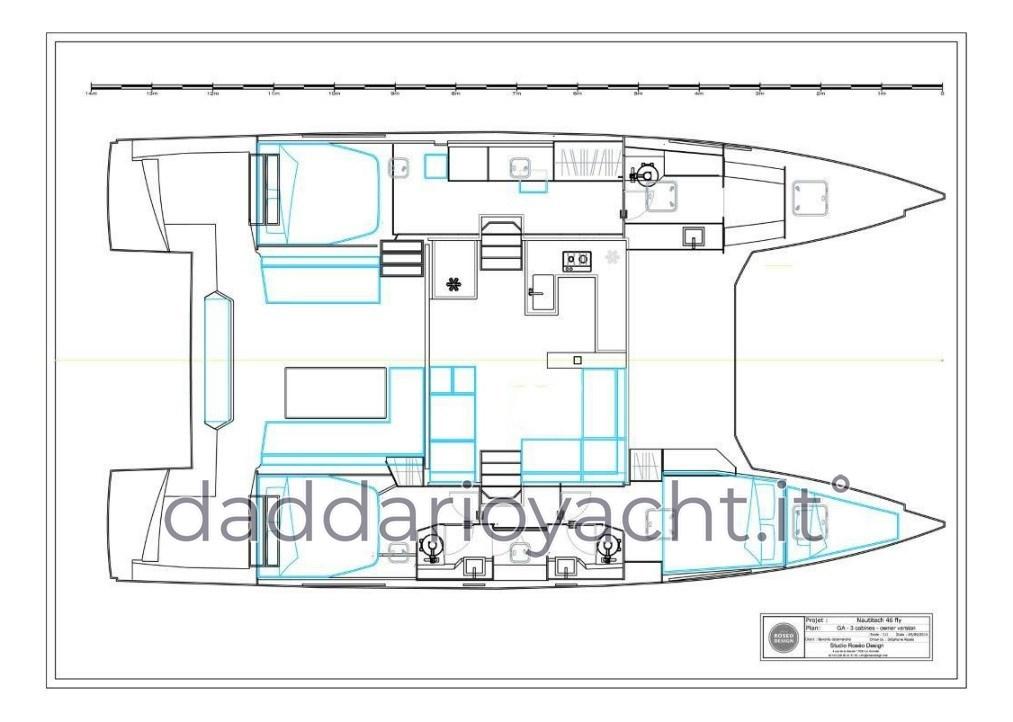 Versione 3 cabine e 3 bagni + 1 cabina equipaggio esterna (solo letto).