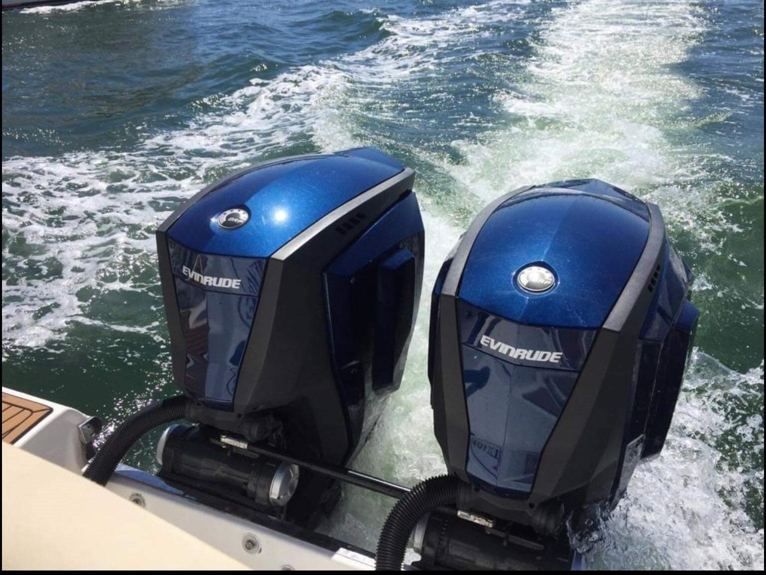 Con una lunghezza di 8.93 m, questo modello 2010 è alimentato da Evinrude BRP (300 CV) .