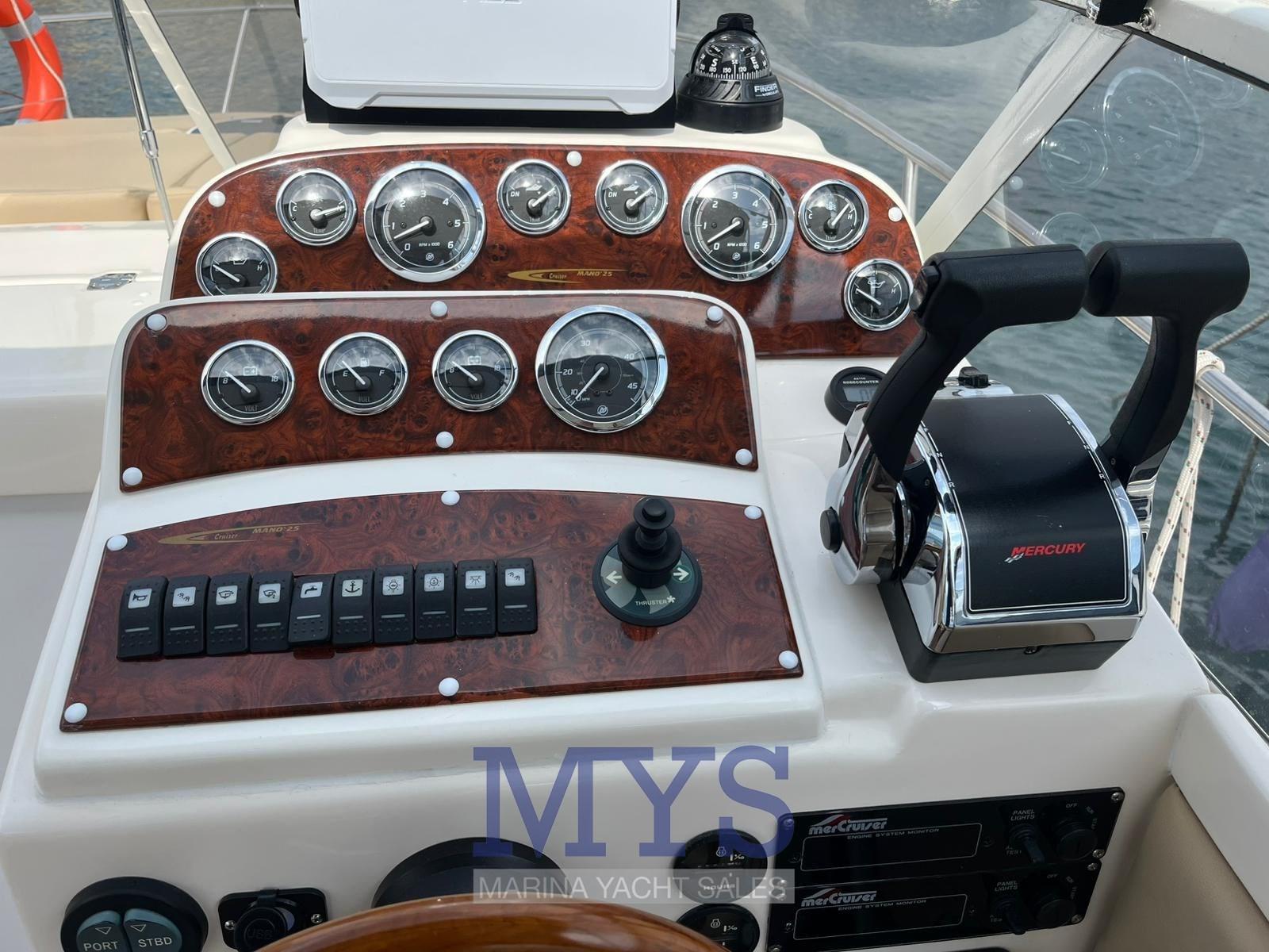 Manò Marine 25 Cruiser – Comfort e Versatilità in 8,25 Metri. Imbarcazione perfetta per uscite giornaliere o mini crociere, la Manò Marine 25 Cruiser unisce sportività, comodità e spazi ben organizzati. Offre grande vivibilità sia in coperta che sottocoperta. Esterni funzionali con ampio prendisole di prua, pozzetto spazioso con tavolo, sedute e cucina esterna (lavello e fornello), oltre a una comoda plancetta bagno con scaletta. Interni con cabina matrimoniale a prua, bagno separato con WC e lavello, seconda zona notte a centro barca e piccolo angolo cucina. Ottima per chi cerca una barca maneggevole, sicura e comoda. In particolare questo modello ha effettuato un REFITTING quasi TOTALE NEL 2024 (vedi dettagli nella descrizione) di impianti, motori, esterni ed interni ... la barca è praticamente NUOVA.