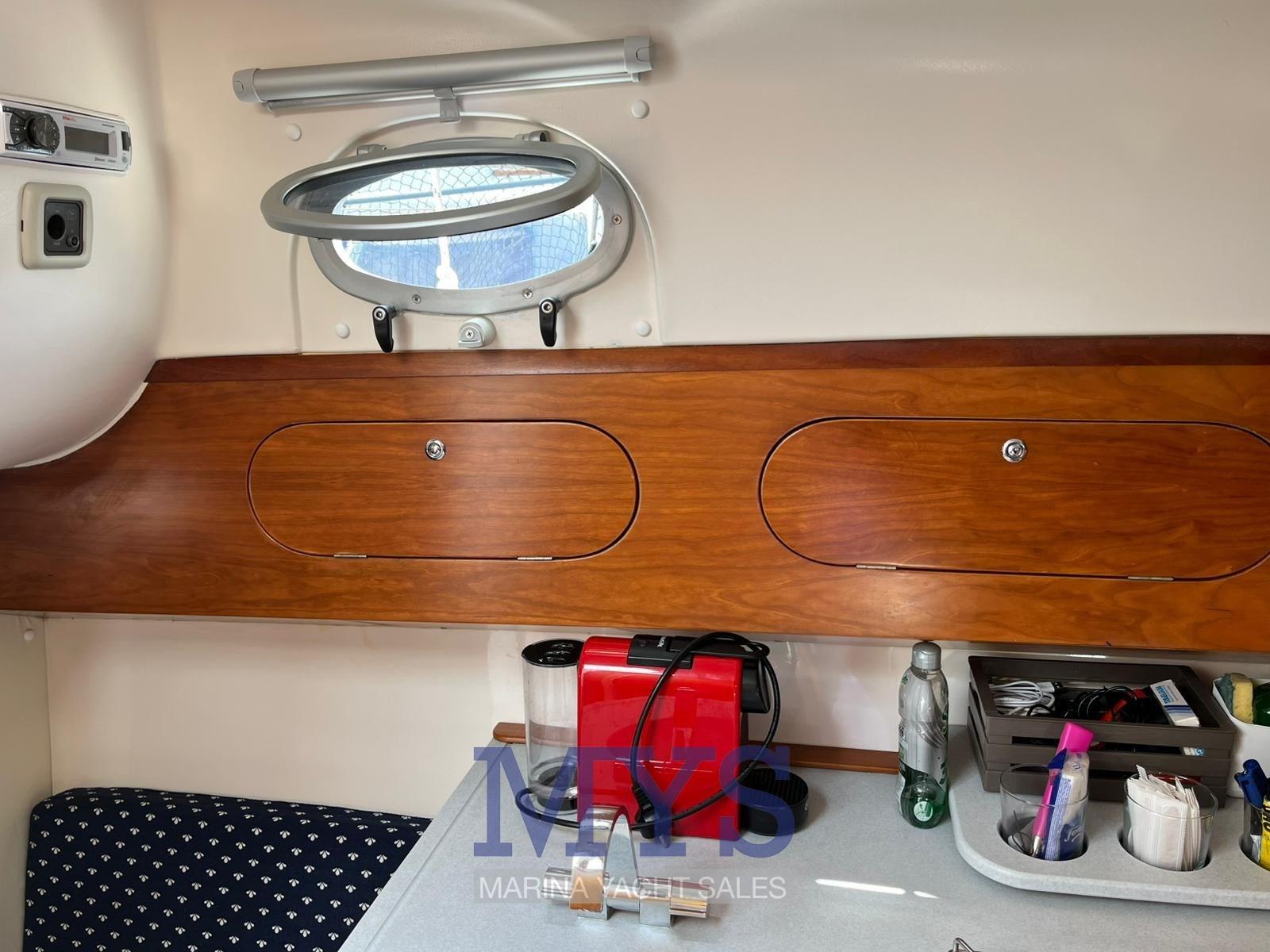Angolo barra, Computer di bordo, Contametri catena, Display, DSC vhf, Ecoscandaglio (Lowrance HDS9 nuovo 2024), Luci di navigazione (nuove 2024), Sedile Copilota.