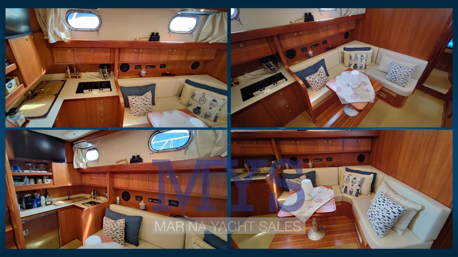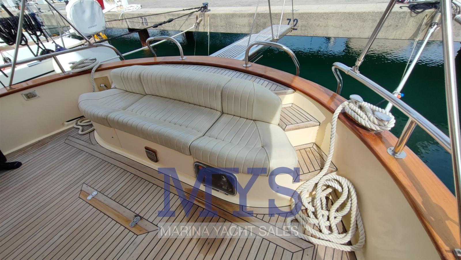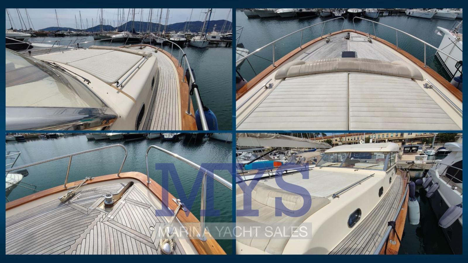 Allarme fumo/gas, Allarme motore, Allarme sentina, Ancora (Bruce + 50 mt di catena), Autoclave, Autogonfiabile (da revisionare), Batterie (4 x 205 Ah + 1 x 120 Ah), Bocche di Lupa, Camminamenti laterali in teak (2022), Doccia esterna, Flap idraulici, Hard top (con tetto apribile manualmente), Impianto antincendio, Impianto Aria Compressa (nuovo 2022), Indicatori Flaps, Lavandino nel Pozzetto, Luci di cortesia, 2 Pannelli Solari, Passerella, Piattaforma (in teak 2022), Pompa di sentina automatica, Pompa di sentina manuale, Porta ingresso, Pozzetto Teak (2022), Presa 220V banchina, Presa acqua banchina, Salpa Ancore Elettrico, Scaletta da bagno, Tavolo pozzetto, Tavolo Salone Abbattibile, Tromba, Tuga in teak (2022).