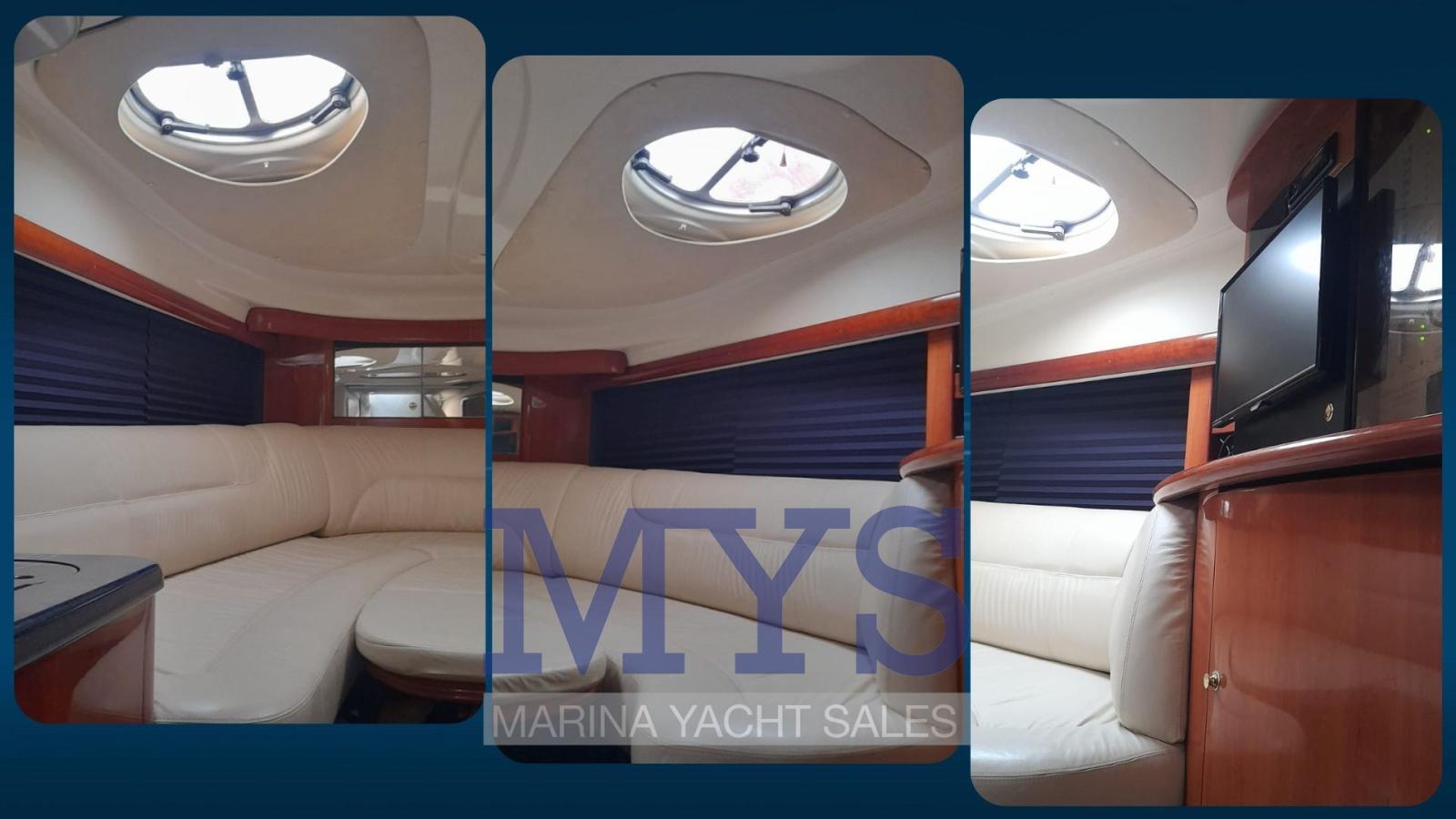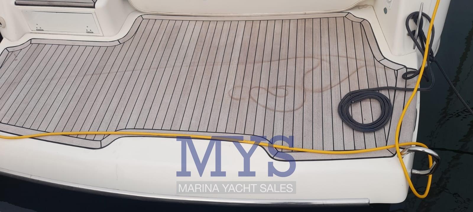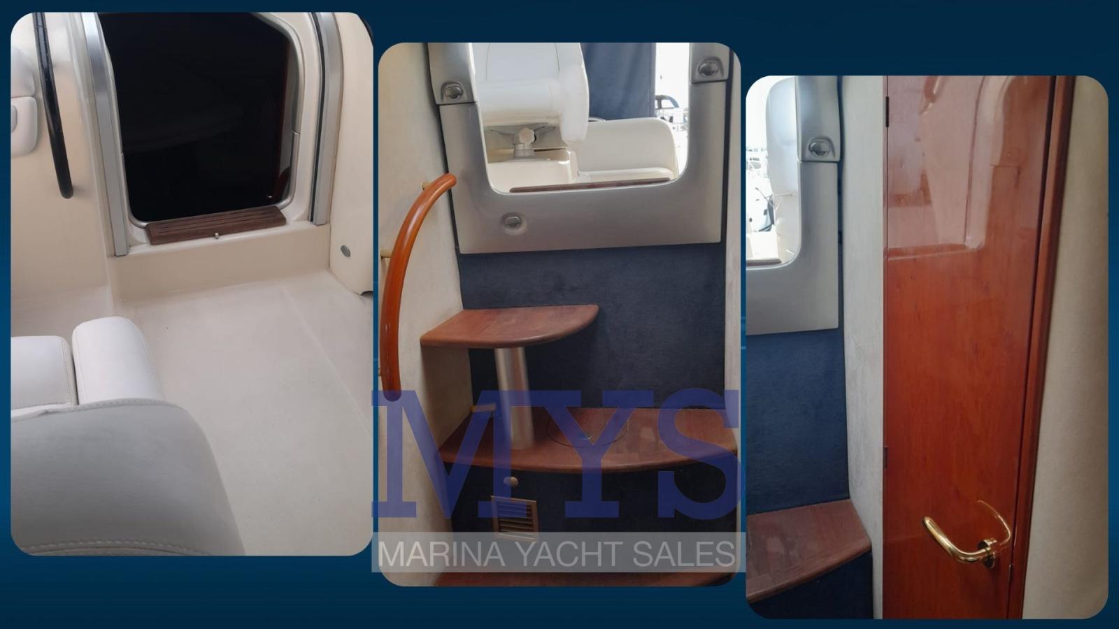 Allarme motore, Allarme sentina, Ancora (+ 100 mt di catena), Apertura Vano Motore Elettrica, Autoclave, Batterie (3 x 100 Ah), Doccia esterna, Faro orientabile, Flap elettrici, Garage per tender, Lavandino nel Pozzetto, Luci di cortesia, Passerella, Piattaforma, Pompa di sentina automatica, Pompa di sentina manuale, Porta ingresso, Pozzetto Teak, Presa 220V banchina, Rollbar, Salpa Ancore Elettrico, Scaletta da bagno, Tavolo pozzetto, Tavolo Salone Abbattibile, Tromba.