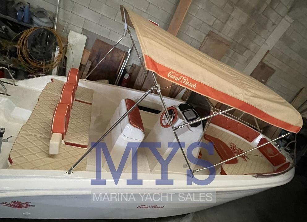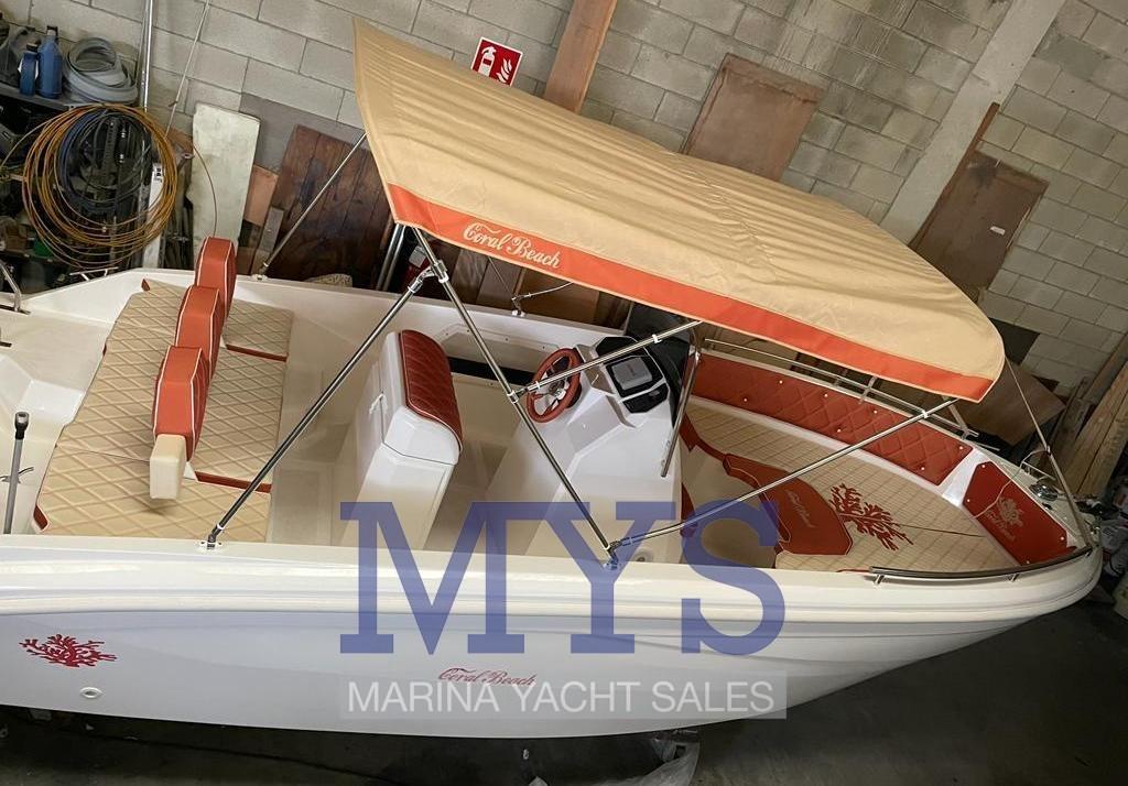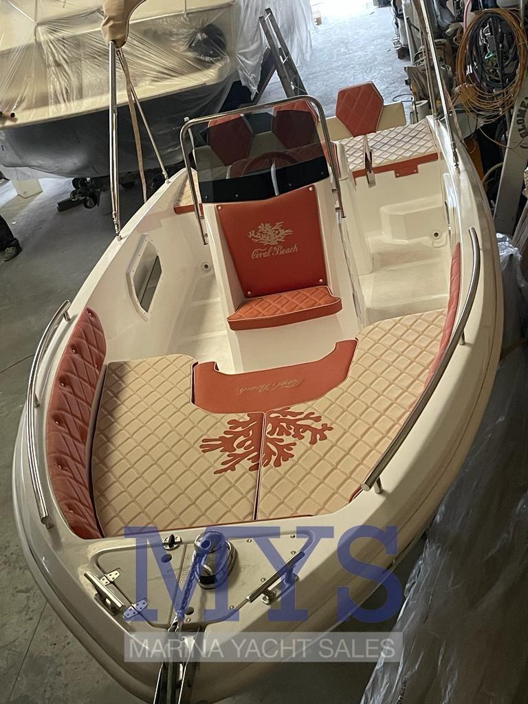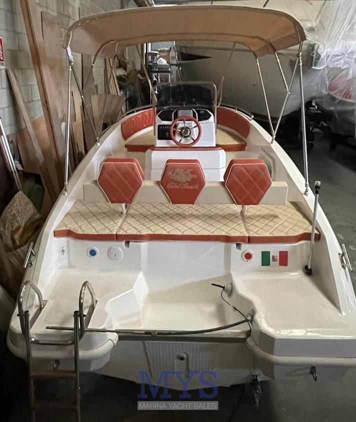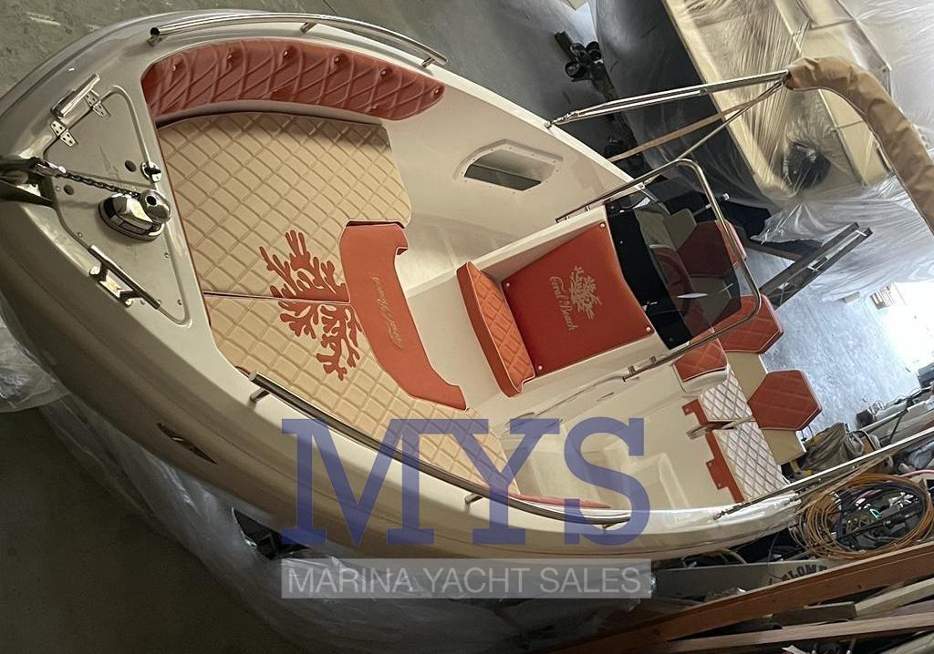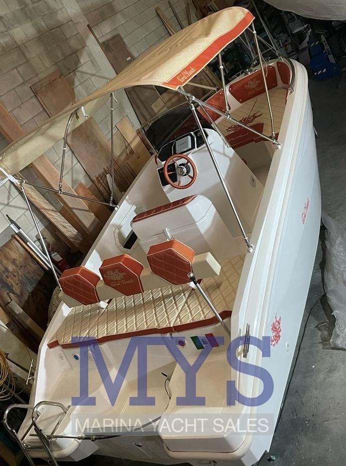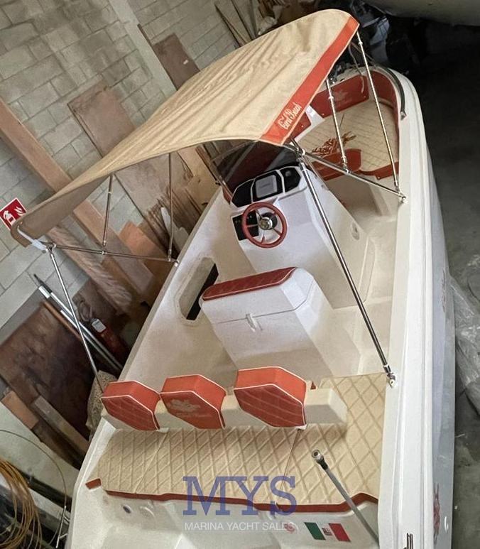 Imbarcazione open di quasi 6 metri, perfetta anche per chi è alla prima esperienza e non vuole rinunciare agli ampi spazi a bordo e alla portata di 8 persone. Completa di prendisole di prua e poppa. Grazie all’eccellente carena, raggiunge comodamente la planata anche con un 40 cv. Caratteristica importante di questa imbarcazione è la consolle più grossa rispetto alle barche della stessa categoria, tasche laterali sempre incluse nel prezzo e prendisole di poppa maggiorato con sistema di spalliera a ribalta.