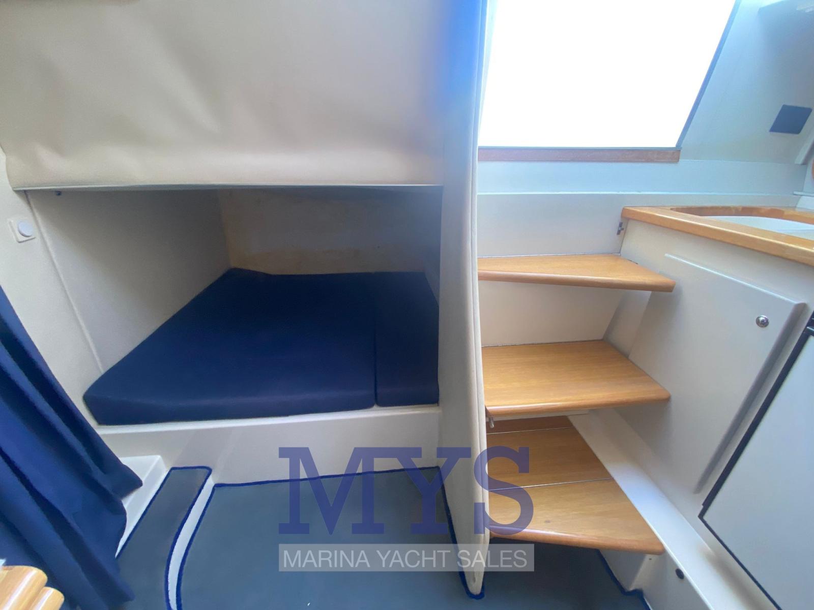 Allarme motore, Allarme sentina, Ancora (+ catena), Apertura Vano Motore Elettrica, Autoclave, Autogonfiabile (scaduta), 2 Batterie, Doccia esterna, Luci di cortesia, Passerella (Besenzoni), Piattaforma, Pompa di sentina automatica, Pompa di sentina manuale, Porta ingresso, Presa 220V banchina, Rollbar, Salpa Ancore Elettrico, Scaletta da bagno, Tavolo pozzetto (idraulico Besenzoni), Tavolo Salone Abbattibile, Tromba.