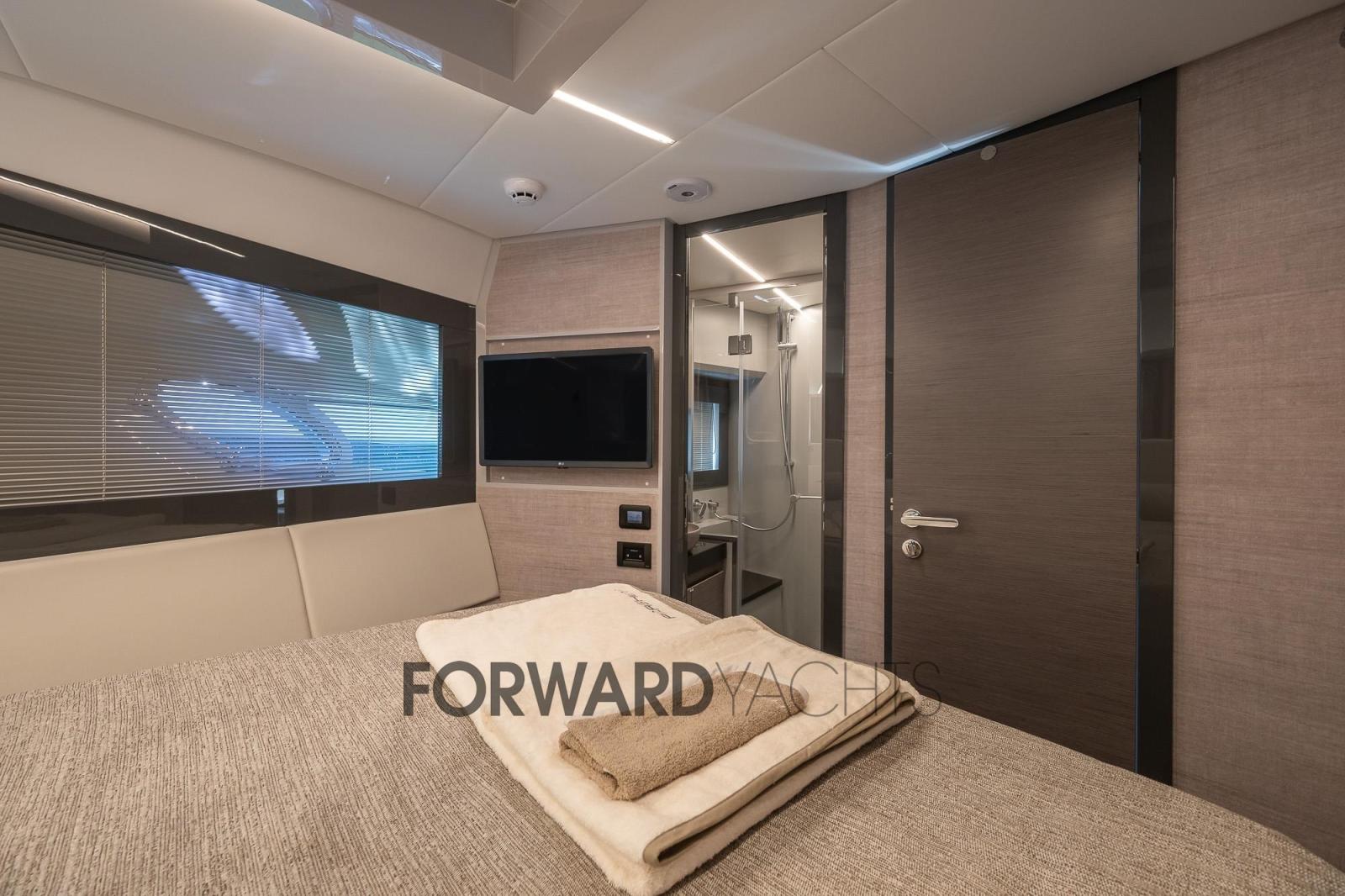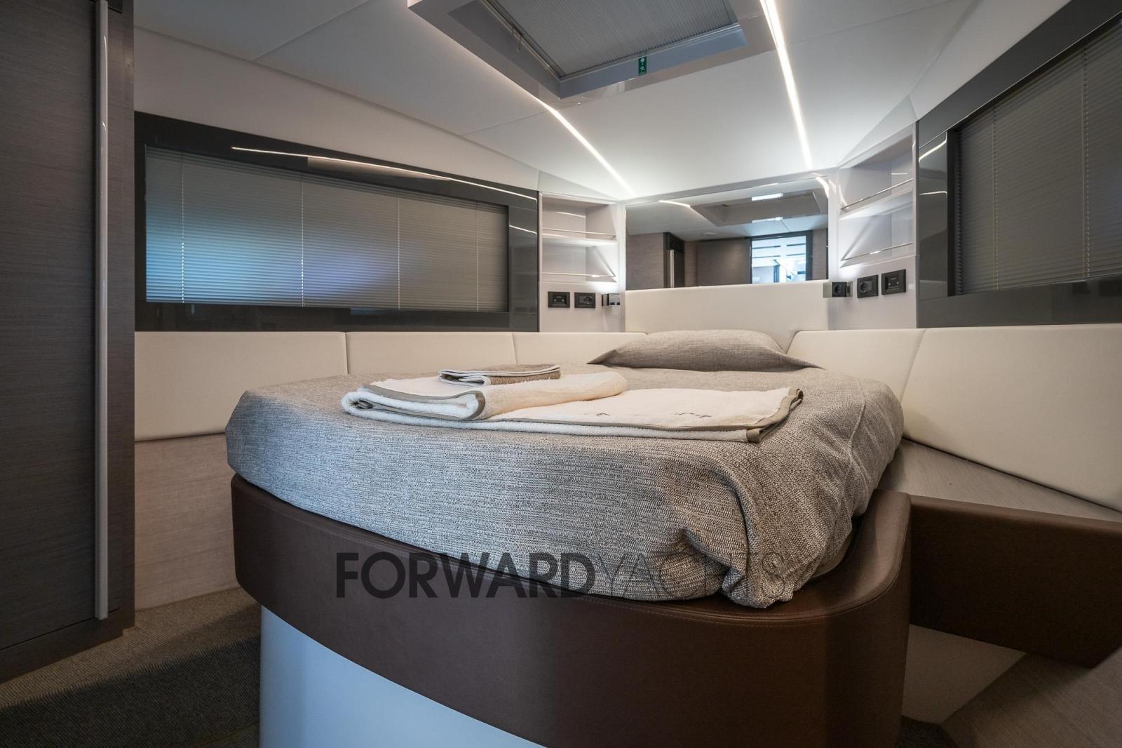 Il ponte inferiore è stato progettato attorno alla grande master suite full beam con bagno privato.
