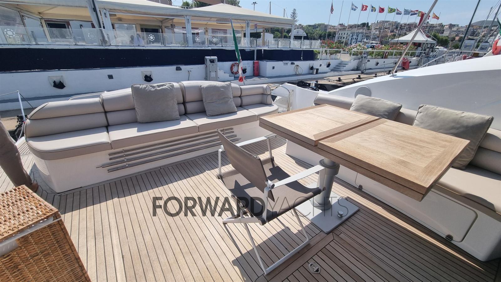 Autoclave, 4 Batterie, Camminamenti laterali in teak, Doccia esterna, Flap idraulici, Garage per tender, Indicatori Flaps, Piattaforma, Pompa di sentina automatica, Pozzetto Teak, Presa 220V banchina, Presa acqua banchina, Salpa Ancore Elettrico, Scaletta da bagno, Tavolo pozzetto, 2 Winch Elettrico.