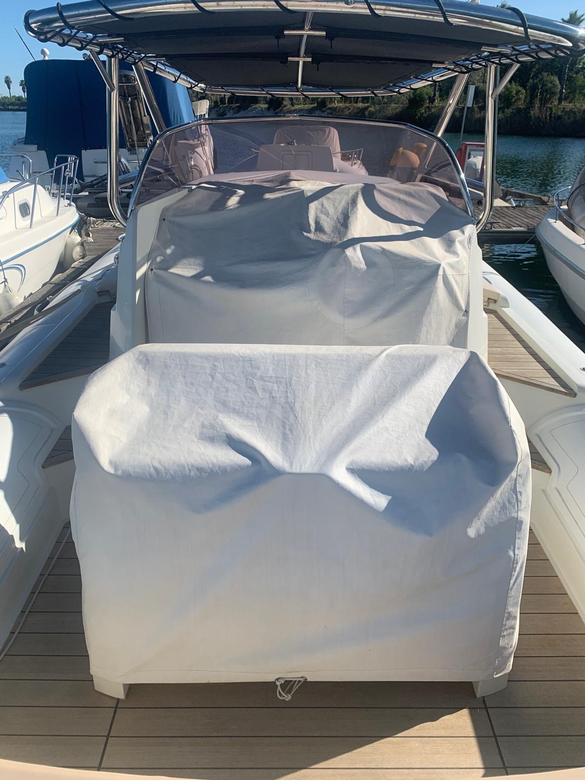 timoneria idraulica; t top inox; coperta in teak; prendisole di poppa trasformabile in divano elettricamente; tendalino parasole a scomparsa; gonfiatore elettrico; commissione per intermediazione del 5% +IVA 22% a carico dell'acquirente (IVA si calcola solamente sull' importo della commissione)