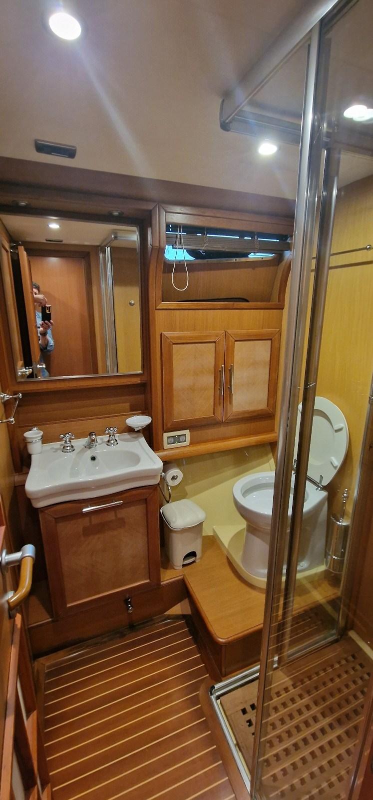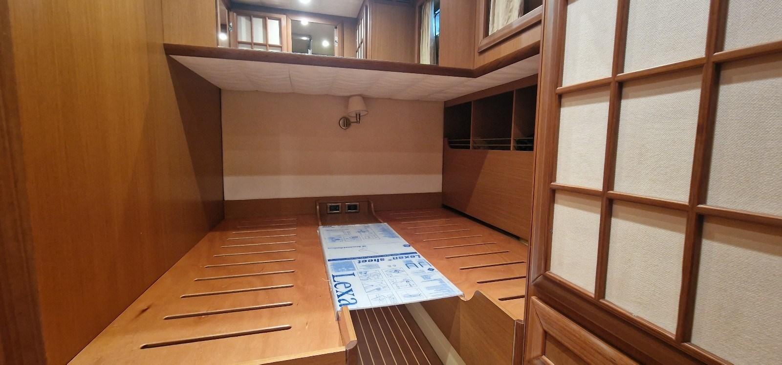 Cabina armatoriale con letto matrimoniale e bagno - cabina ospiti con due letti in piano e bagno.