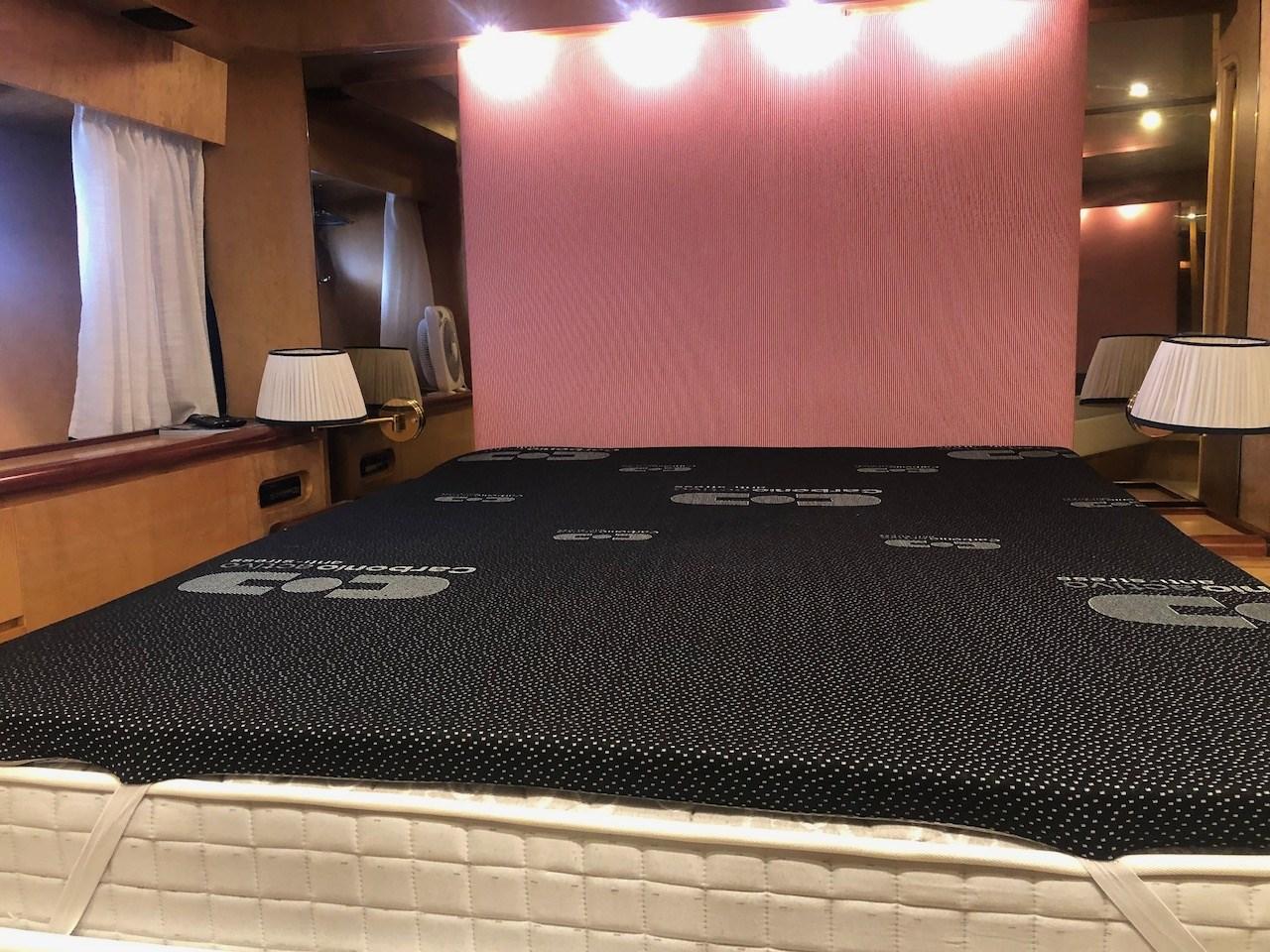 Sostituzione delle prese a mare motori principali - nuovo serbatoio acque grigie e relativi clarinetti - sostituzione delle pompe di sentina - nuovo dissalatore Urania 160 L/h - revisione impianto antincendio - sostituzione insonorizzazione gruppo elettrogeno - sostituzione alternatori - sostituzione tendalino fly - nuova catena ancora - sostituzione VHF plancia - sostituzione di alcune tappezzerie interne - sostituzione guarnizioni oblò e nuova sigillatura - sostituzione pavimento cucina - sostituzione di tutti gli elettrodomestici - sostituzione motorini di avviamento - istallazione manette elettroniche - revisione completa salpa ancora - sostituzione cuscineria di prua - sostituzione boiler - sostituzione autoclave - sostituzione pompa acque grigie - pulizia serbatoi gasolio - sostituzione serbatoio inox gasolio giornaliero - lucidatura tuga - sostituzione di tutte le prese a mare - sostituzione di tutte le batterie, motori e servizi - revisione gruppo aria condizionata - nuova moquette - revisione generatore - revisione idraulica pedana saliscendi di poppa - revisione idraulica passarella.