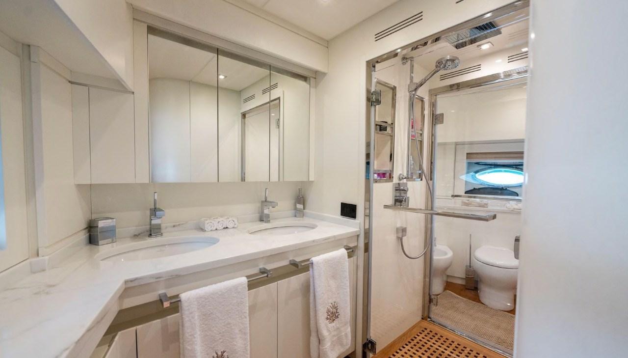 Cabina armatoriale con letto matrimoniale e bagno - cabina Vip con letto matrimoniale e bagno - cabina ospiti con due letti in piano e bagno - cabina ospiti con due letti in piano - cabina singola - bagno ospiti.