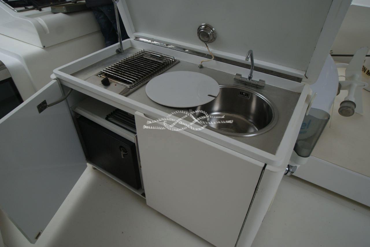 Elica di prua e di poppa - luci subacquee - tender Capelli con fuoribordo Yamaha 40 hp 4t - doppia ancora, doppio verricello salpa ancora - piano cottura vetroceramica - forno - frigo / freezer - frigo doppio in salone - antenna TV - antenna SAT - TV LCD in salone - TV LCD in cabina armatoriale - mobile bar sul fly con grill, frigo e lavabo - bimini top - dissalatore - aria condizionata caldo/freddo.