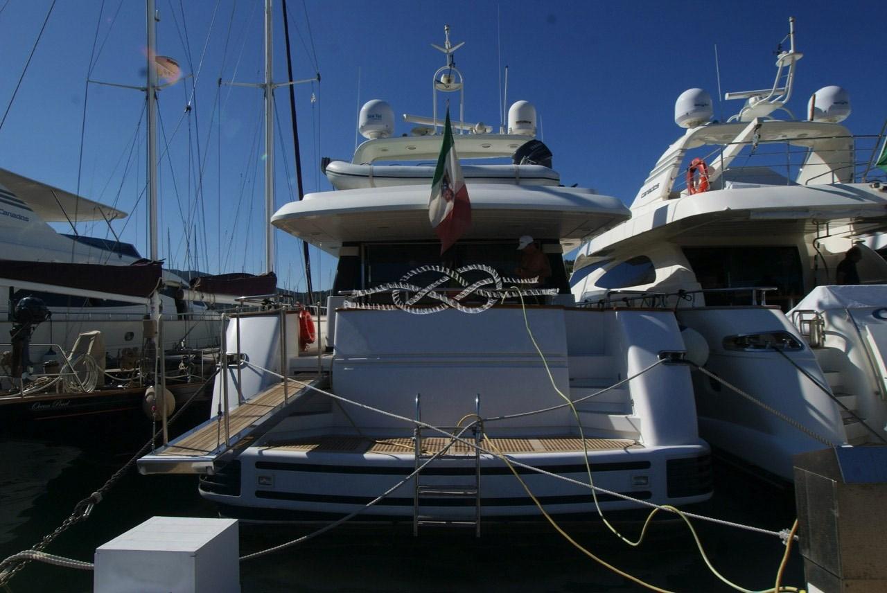 Allarme motore, Autoclave, Doccia esterna, Doppia timoneria, Flap idraulici, Gruette per tender su fly, Impianto antincendio, Lavaggio catena, Luci subacquee, Passerella, Piattaforma, Porta ingresso, Porta laterale, Pozzetto Teak, Presa 220V banchina, Presa acqua banchina, Rollbar, Salpa Ancore Elettrico, Scaletta da bagno, Tavolo pozzetto, Tender (Capelli con fuoribordo Yamaha 40 hp 4t), Winch tonneggio di poppa.
