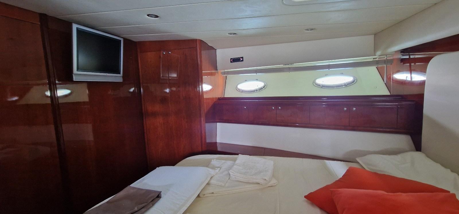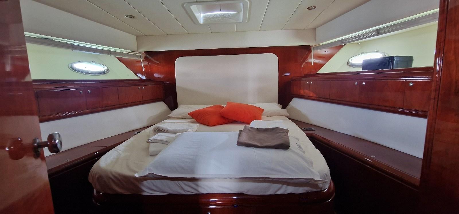 Cabina armatoriale con letto matrimoniale e bagno - cabina vip a poppa con letto matrimoniale e bagno - cabina ospiti con due letti e bagno.
