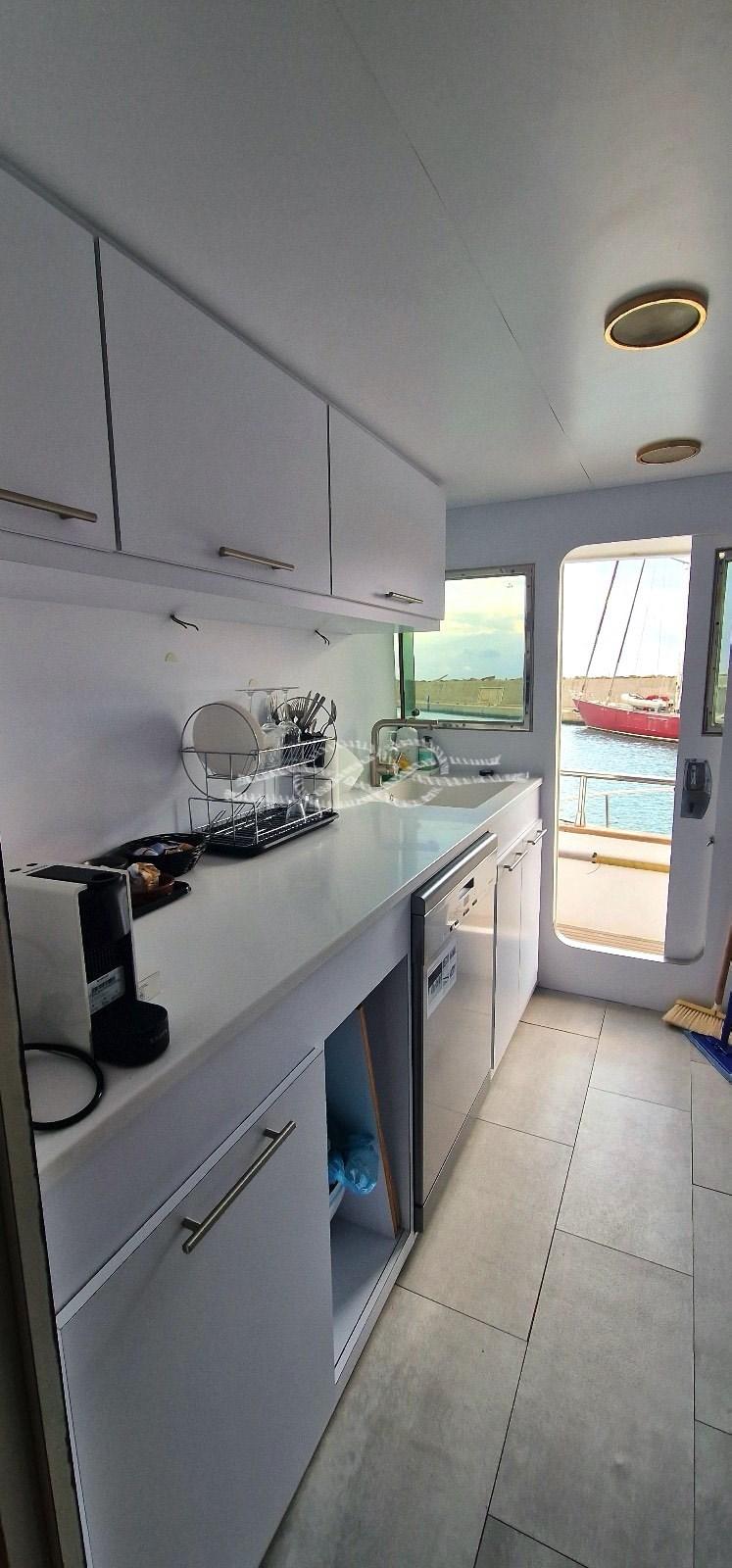 Lavori 2019: rifacimento completo della cucina - verniciatura scafo in blu.