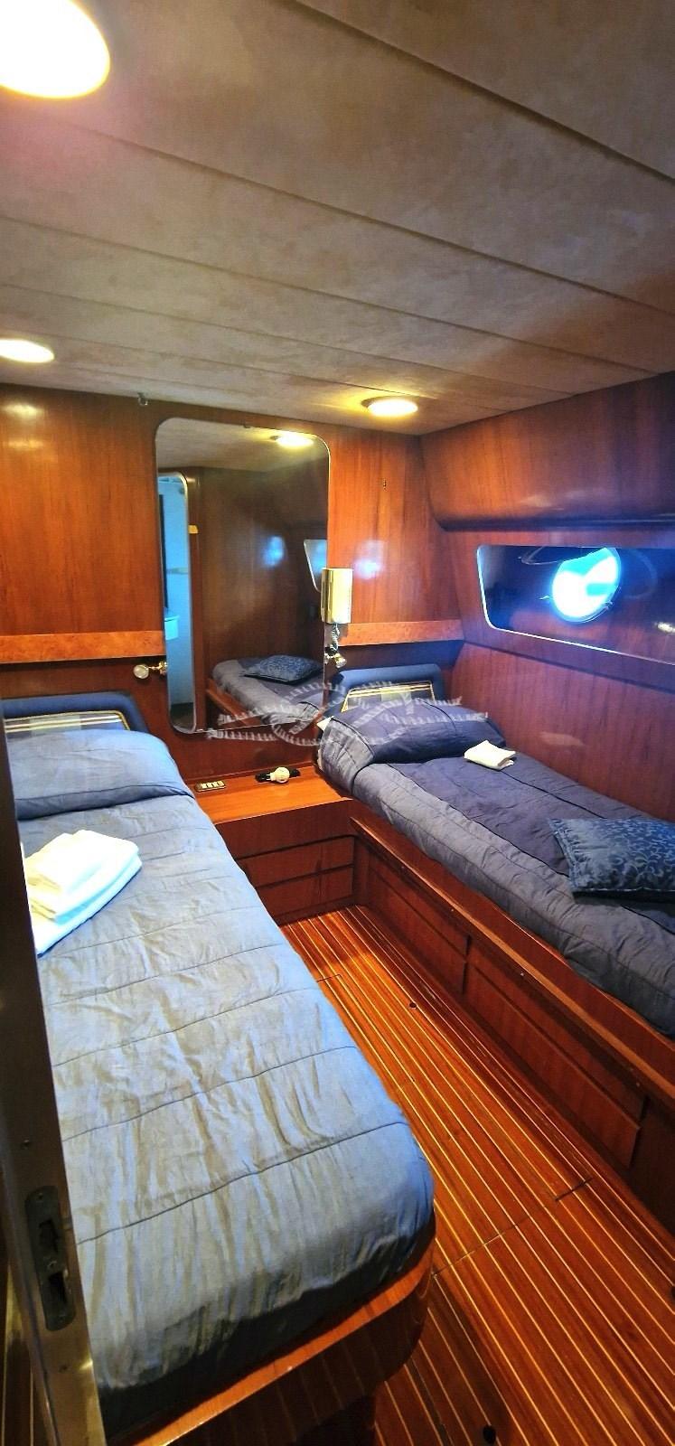 Cabina armatoriale con letto matrimoniale, bagno e cabina ufficio - cabina vip con due letti e bagno - cabina ospiti con due letti e bagno - cabina ospiti con due letti e bagno.