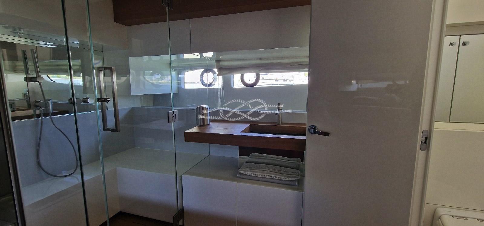 Aria condizionata - gruppo elettrogeno - elica di prua - antenna TV - TV LCD - tender lift - passerella elettroidraulica - piano cottura elettrico - frigo freezer - lavastoviglie.
