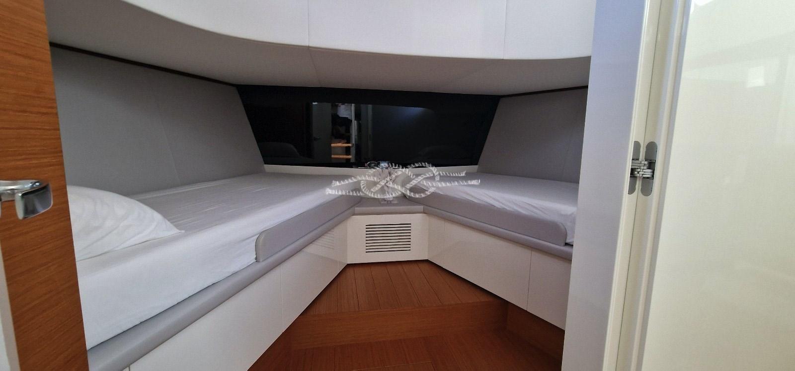 Cabina armatoriale con letto matrimoniale e bagno - cabina ospiti con due letti a V e bagno - dinette.