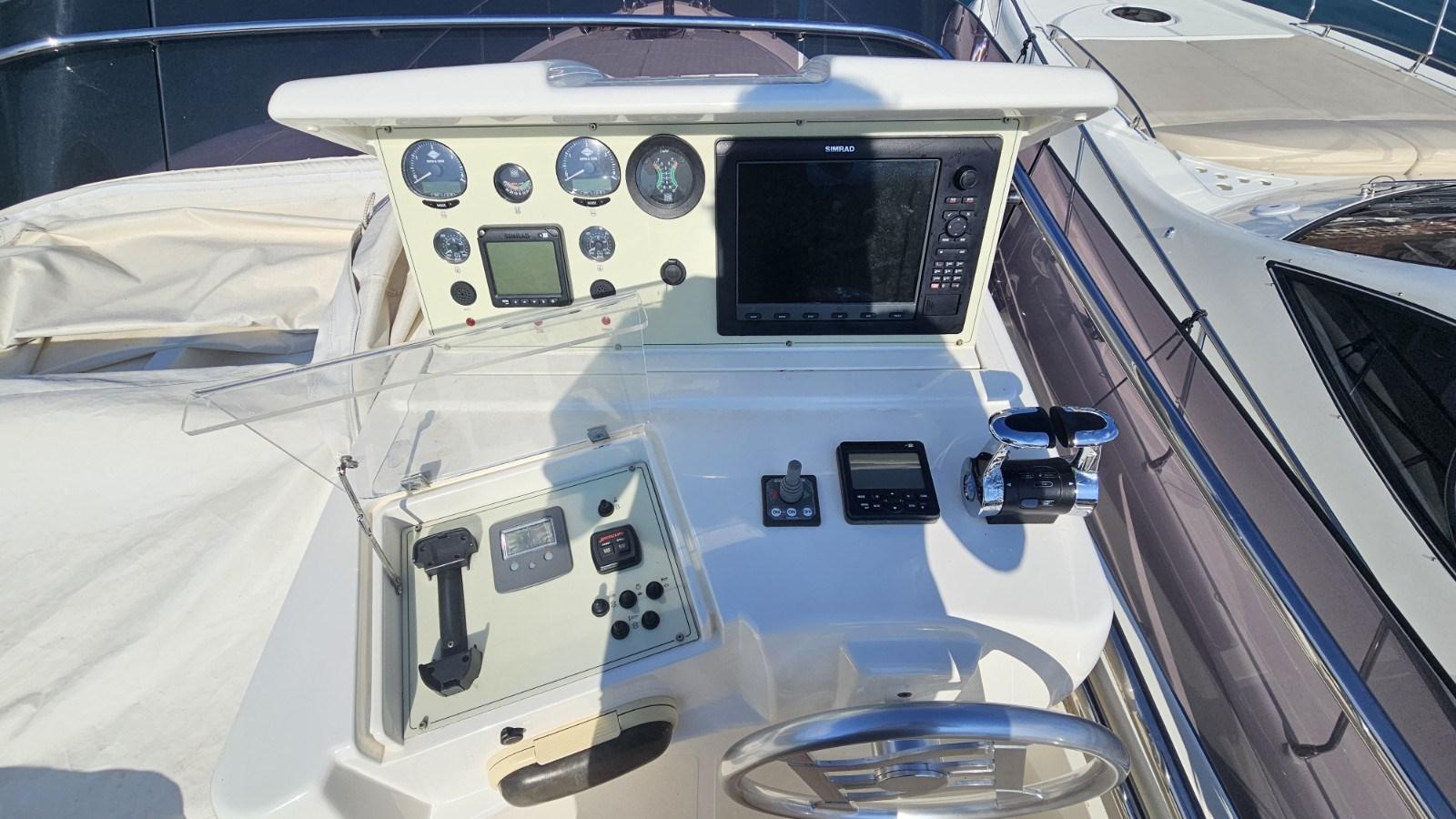 Allarme motore, Allarme sentina, Autoclave, Doccia esterna, Doppia timoneria, Flap idraulici, Impianto antincendio, Indicatori Flaps, Luci di cortesia, Passerella, Piattaforma, Porta ingresso, Pozzetto Teak, Presa 220V banchina, Presa acqua banchina, Rollbar, Salpa Ancore Elettrico, Scaletta da bagno, Tavolo pozzetto, Tromba, Winch tonneggio di poppa.