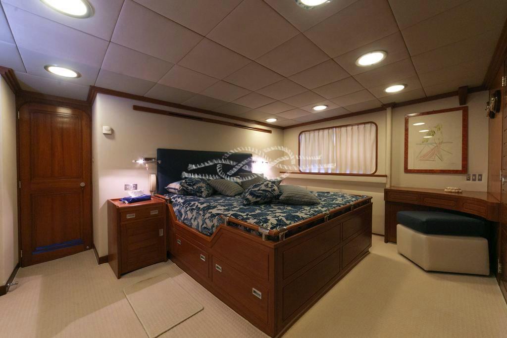 Cabina armatoriale sul ponte principale con letto matrimoniale e bagno - cabina Vip con due letti e bagno - cabina ospiti con due letti in piano e bagno - cabina ospiti con due letti in piano e bagno.